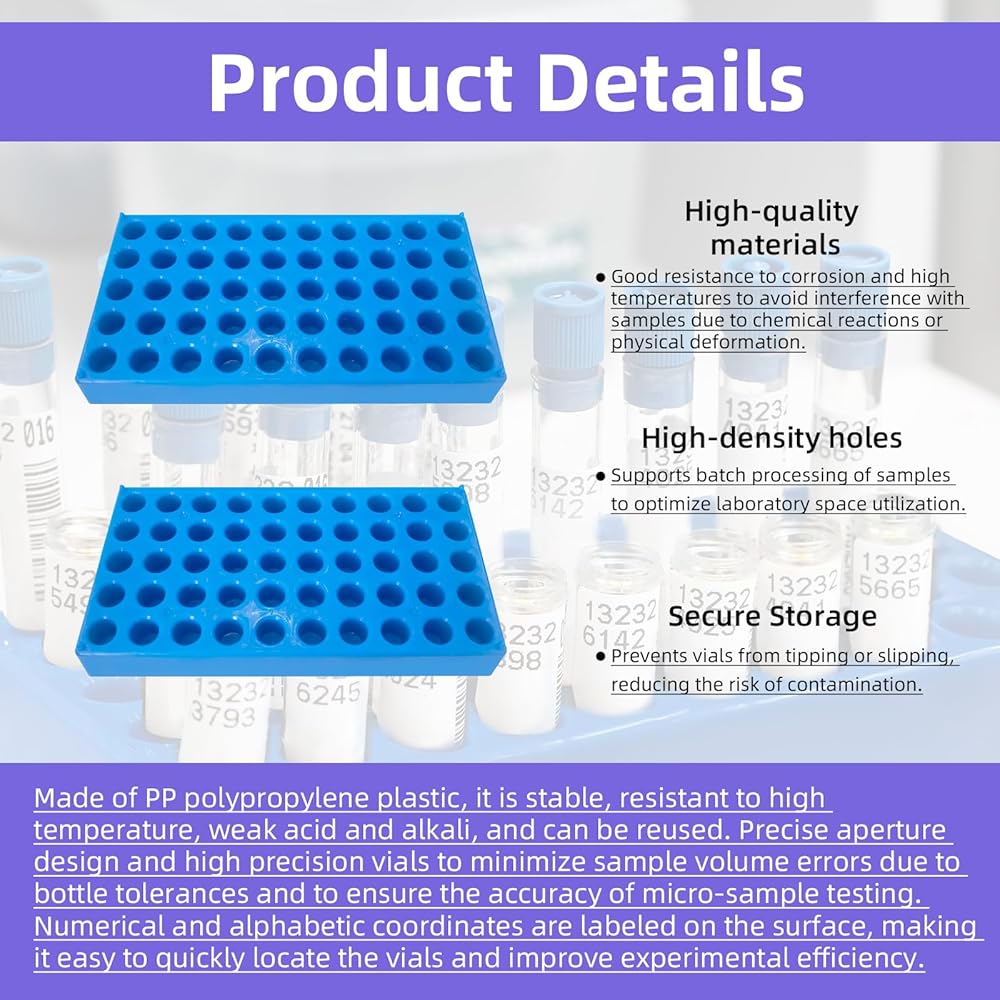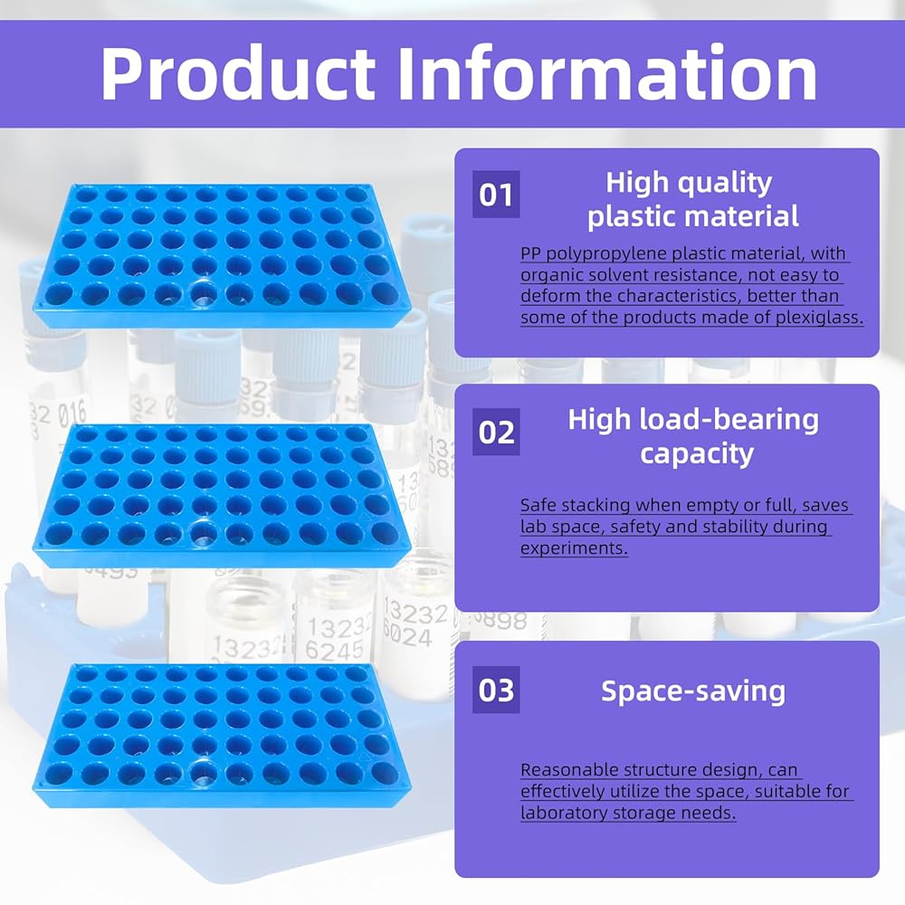 Lab-Grade Durability: Crafted from non-degrading polypropylene, these racks resist chemicals, heat, and impacts, ensuring reliable performance in pharmaceutical, academic, or industrial settings.
