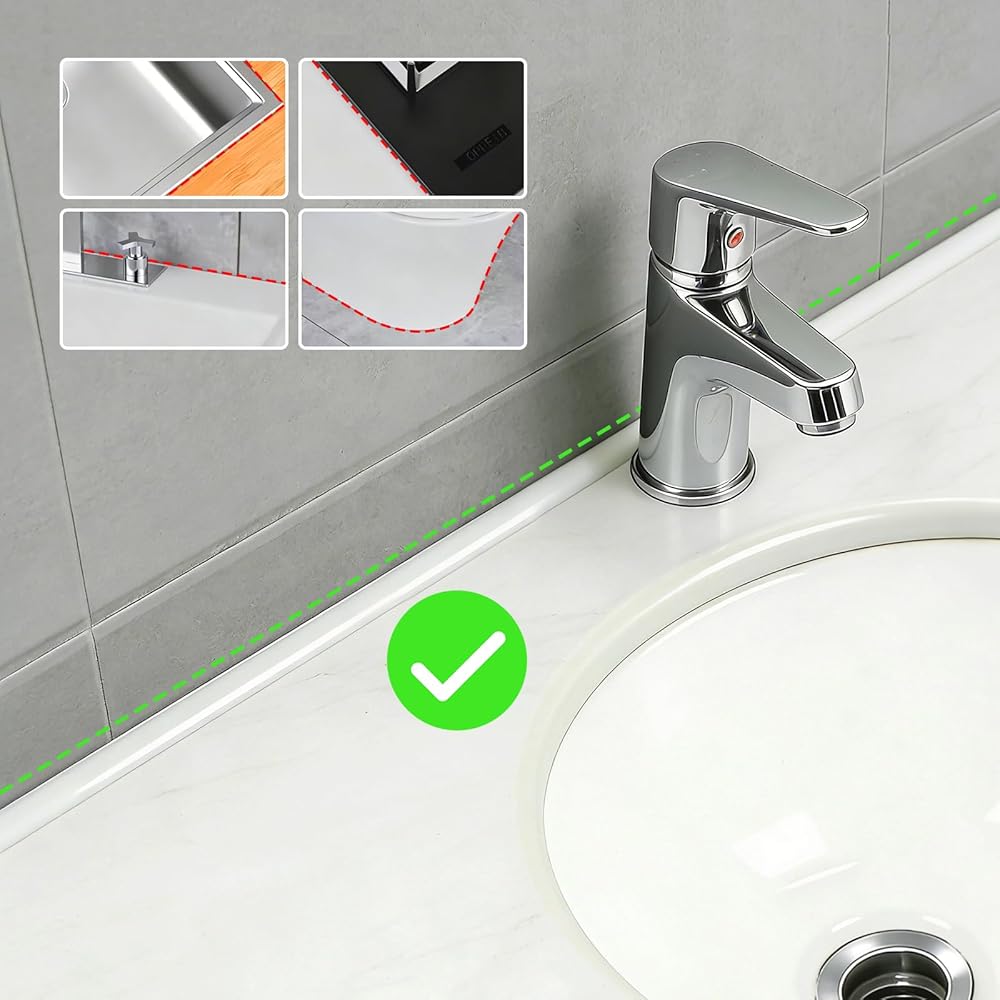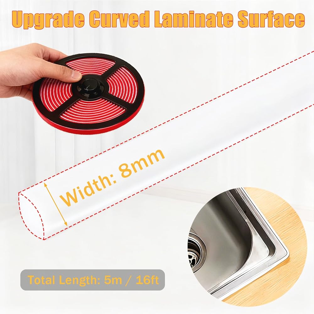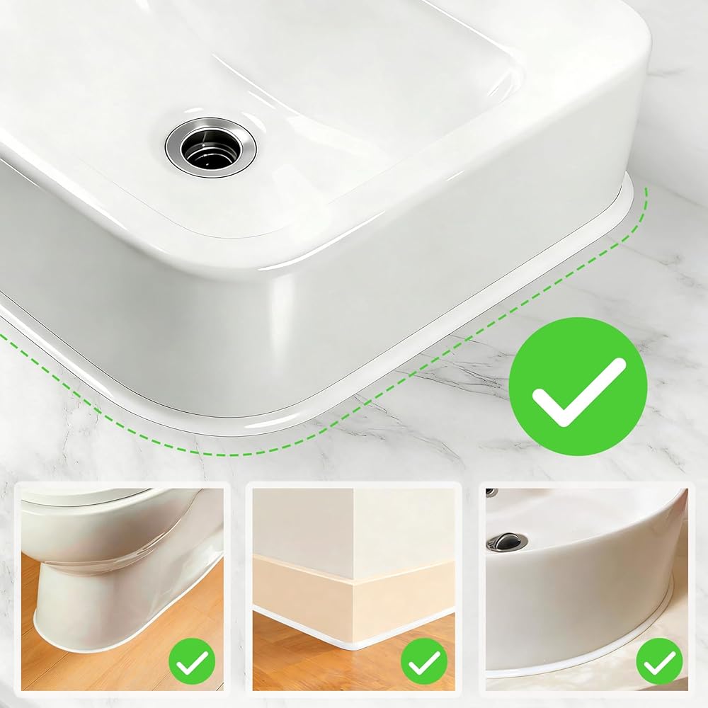 【Triangular Arc Design】Triangular arc inside corner seal, fills kitchen/bathroom inside corners perfectly, tight leak-proof seal, achieving full filling and sealing, cracking and falling issues of traditional caulk.