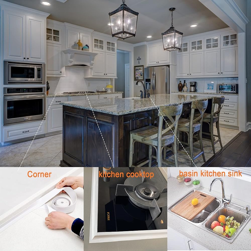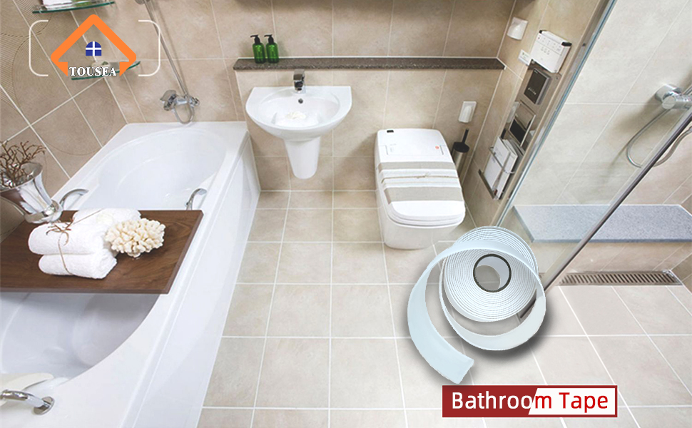 شريط السد الأبيض للحمام والمطبخ، شريط لاصق ذاتي أبيض للحمام، محيط الحوض، عصا وعاء المرحاض، سطح المطبخ (1.5 بوصة × 10.5 قدم، غلاف نفطة PVC)