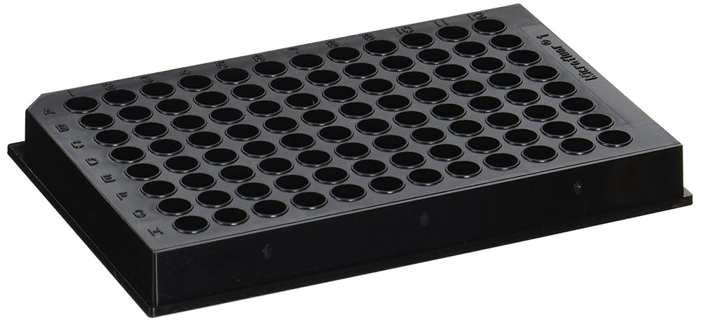 Microtiter plates are specifically designed for the demanding immunology requirements of biotechnology, life science and pharmaceutical research laboratories. White Microtiter plates include Microlite™ products for luminescence applications. Black Microtiter plates include Microfluor® products for fluorescence applications. 96 well plates have raised wells to prevent cross-contamination. High-throughput compatible 384 well plates allow miniaturization of assays and are suitable for applications such as genomics and combinatorial chemistry. Square wells, with well volumes of 120 µl, increase the cross-sectional surface.