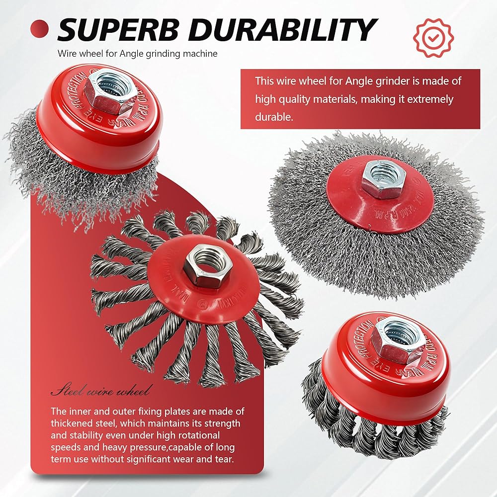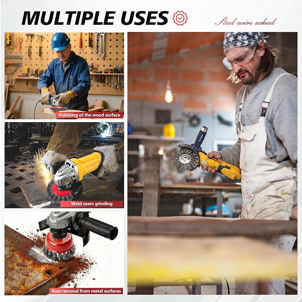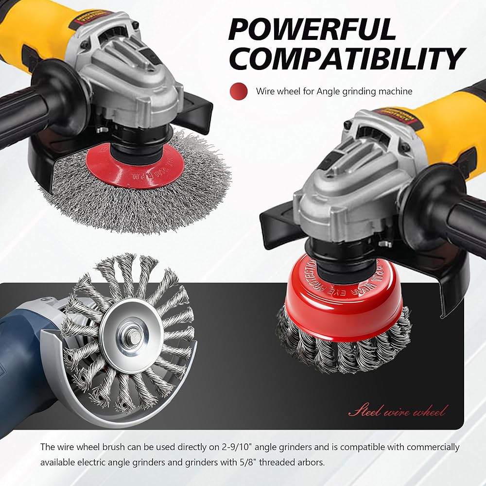 • Compatibility: The angle grinder wire wheel and cup is compatible with all 4-1/2” angle grinders with 5/8” arbor or 11 UNC standard thread.