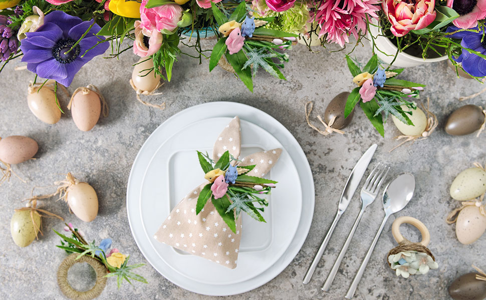 أجواء عيد الفصح الممتعة: حلقات مناديل عيد الفصح هذه مليئة بسحر احتفالي. إنهم حقًا يجلبون روح العطلة إلى منزلك