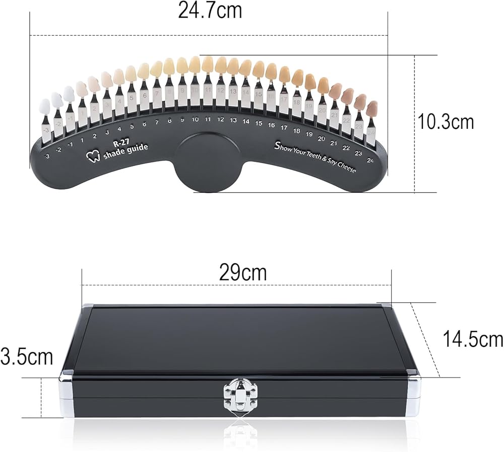 - Use the shade guide, the clear layout makes it easy to record and observe changes in teeth shade. Lightweight design, small size, light and practical.