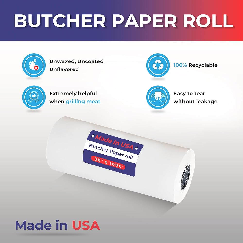 • High-Quality Butcher Paper – POS Paper USA's 30" x 1000' Butcher Paper Roll is made from durable 40# bleached white paper, designed for reliable performance in both home and commercial kitchens.