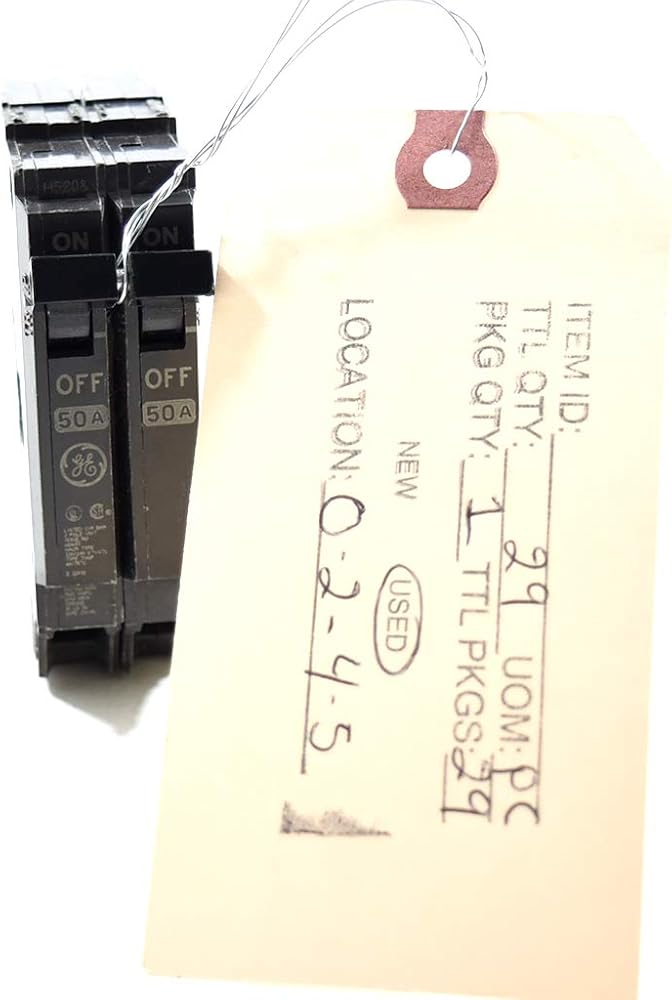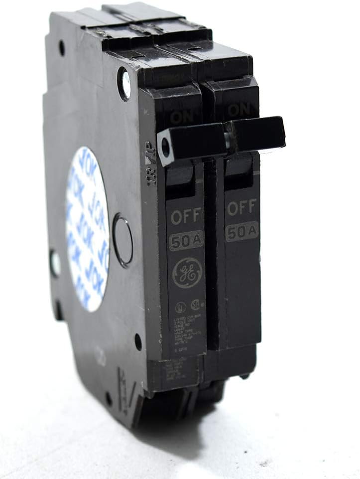 The General Electric Double-Pole 50-Amp Half Size Circuit Breaker is ideal for protecting your power system from irritating and potentially dangerous circuit breaker problems. It has two poles, a thin one-inch format, 120/240 VAC, and 10,000 A.I.C. View-Pak's line of individual circuit breakers means that you can easily and conveniently replace a circuit breaker to maintain the top performance of your electrical system, and with View-Pak's wide variety you can be sure you'll find the specific circuit breaker you need. This circuit breaker is made by General Electric.