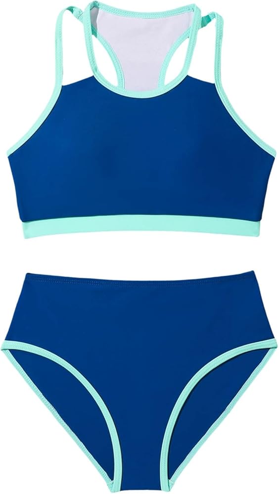 • Two-Piece Tankini Set: Tank top and coordinating shorts offer coverage with easy bathroom breaks for young girls during beach outings
