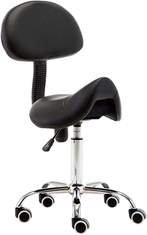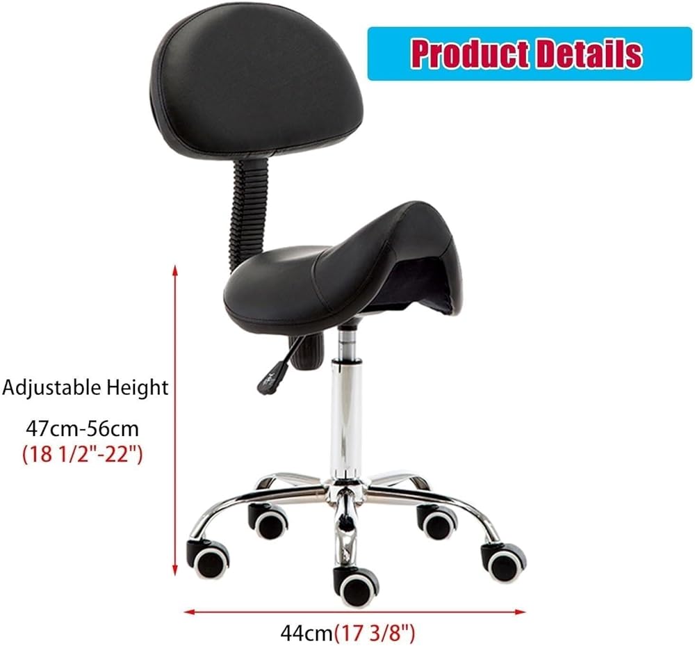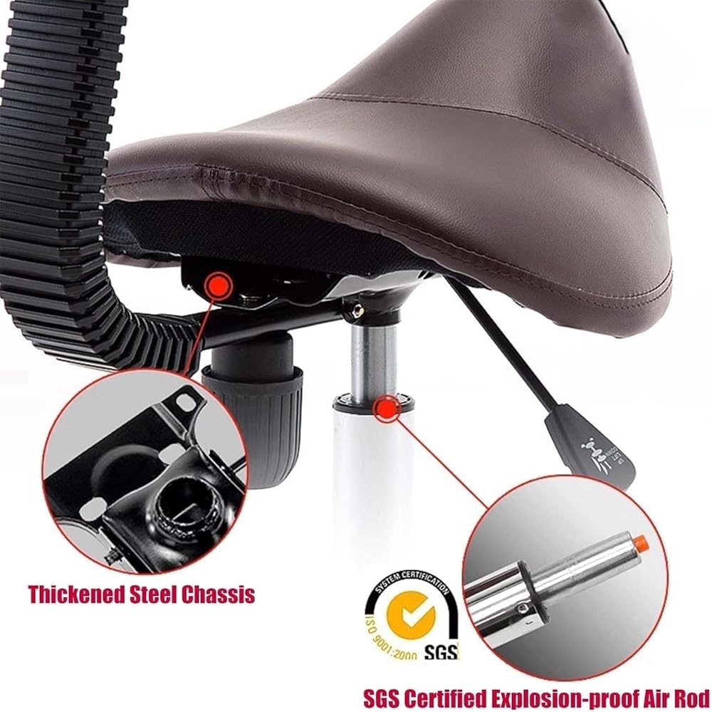 كرسي سرج مريح مع دعم للظهر، مقعد دوار قابل للتعديل للأسنان، الصالون، المكتب والاستخدام المنزلي - دوران 360 درجة، مقعد مريح من جلد البولي يوريثان، أقصى تحميل 440 رطل (أسود)