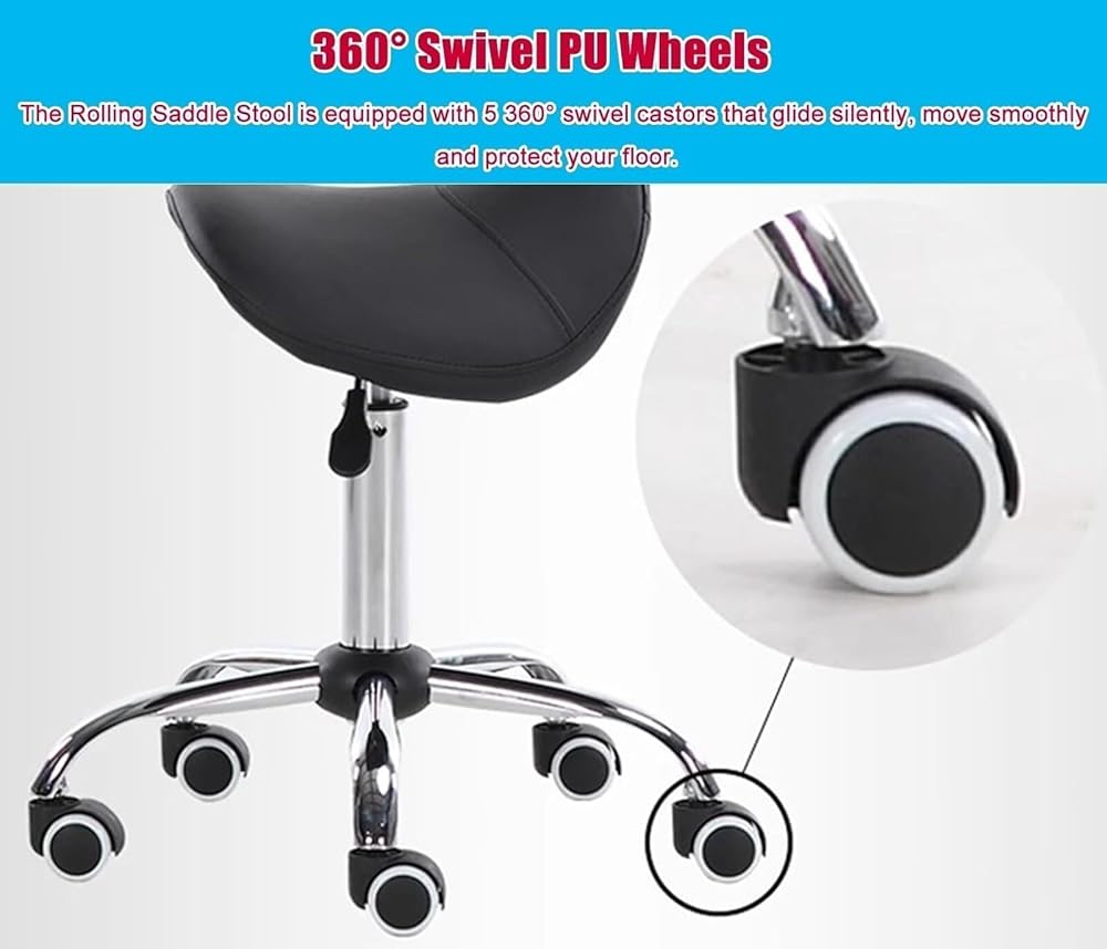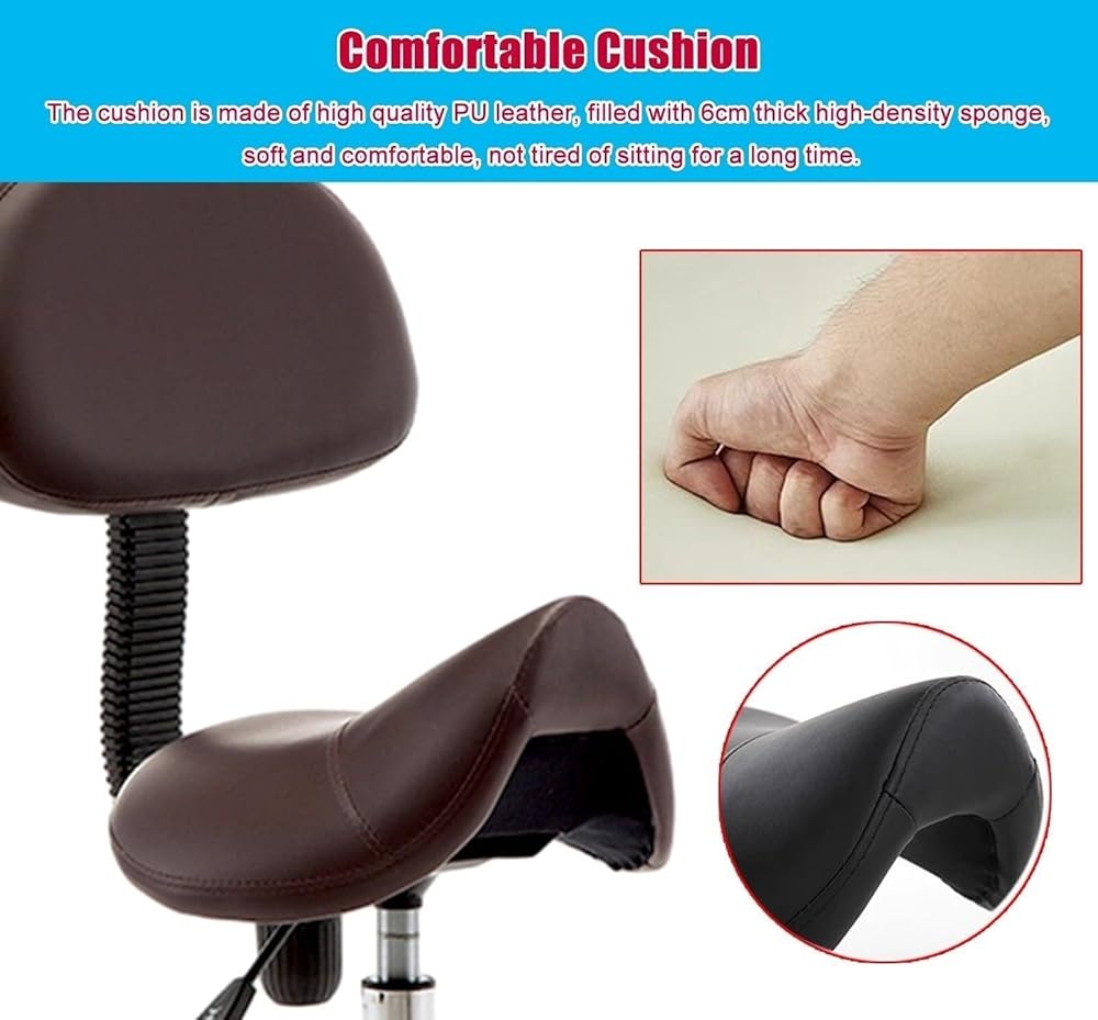• Ergonomic Design for Comfort: The saddle seat provides lumbar support, promotes proper posture, and relieves back pain, making it ideal for long hours of sitting.