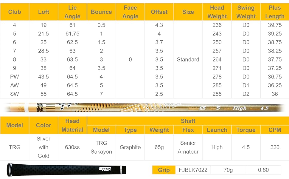 The new Pron TRG22 chrome finish iron head is a progressive sole shaped iron with innovative Face insert,a high-speed cavity back design for faster ball speed and longer,straighter flight trajectory.