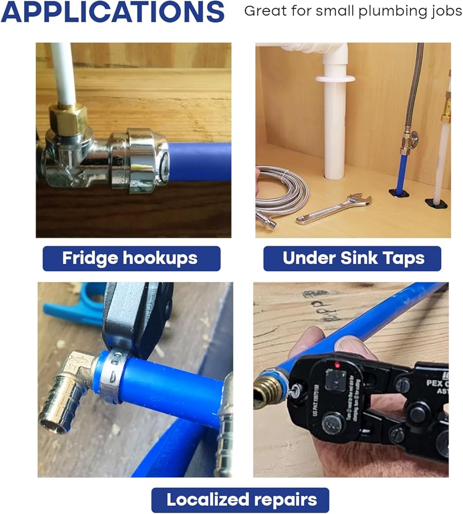 • Compliant: PEX B tubing meets NSF and ASTM standards for potable water use and is UV resistant, ensuring safe, long-lasting performance in both indoor and outdoor applications. It is reliable for plumbing systems, offering durability and compliance with strict industry regulations.