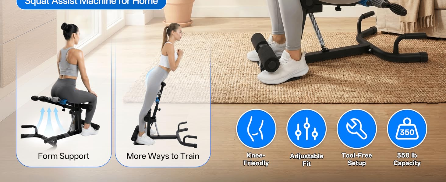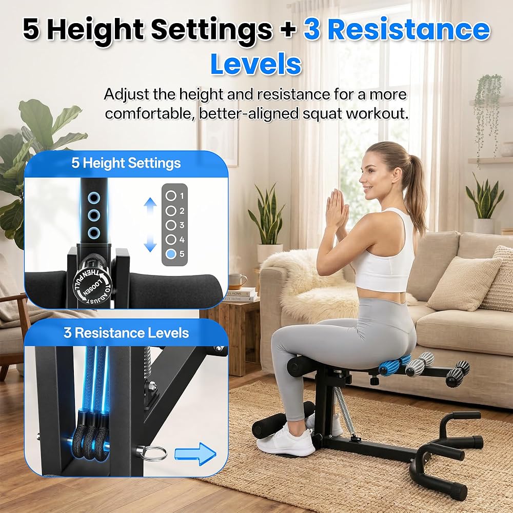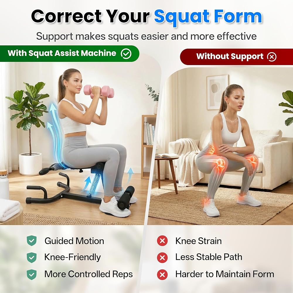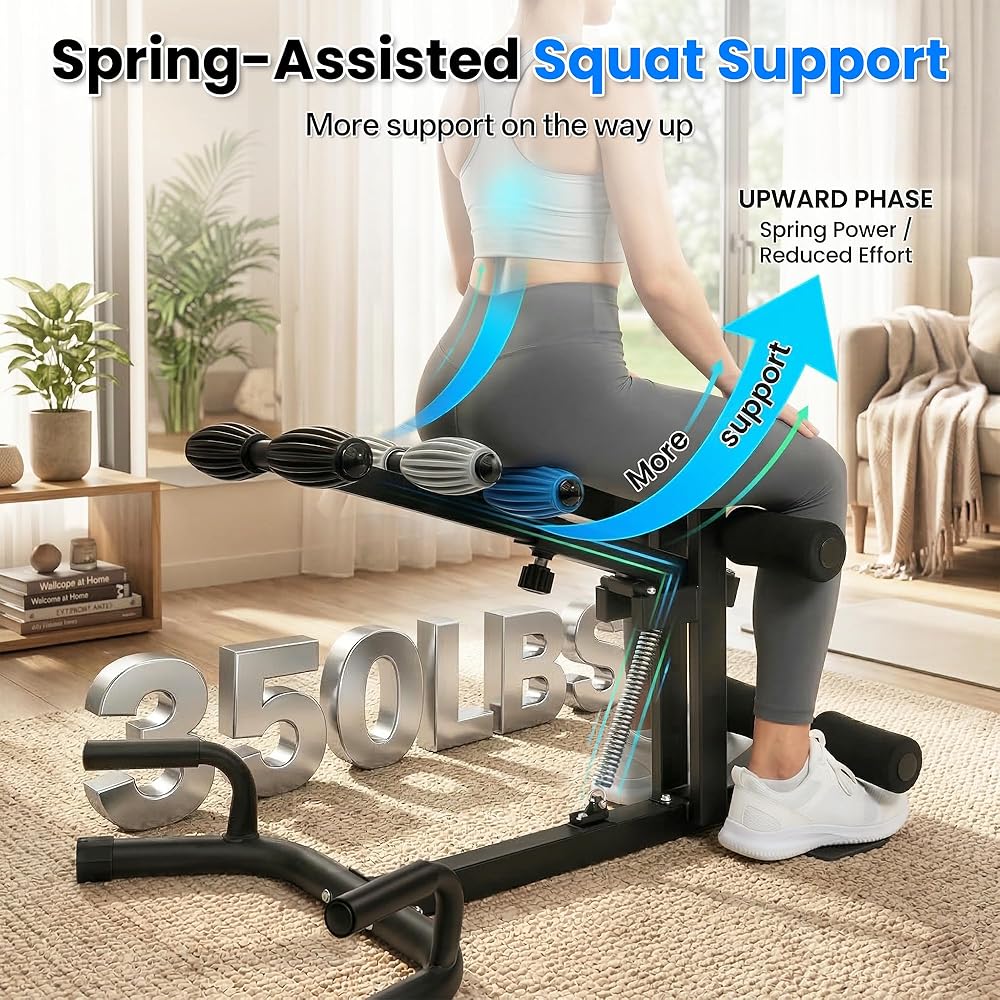 Deep Squat Machine for Home Gym, Assisted Glute Trainer with Adjustable Resistance, Squat Assist Machine for Women & Men, Glutes & Abs Workout Equipment, 350 Lbs Capacity