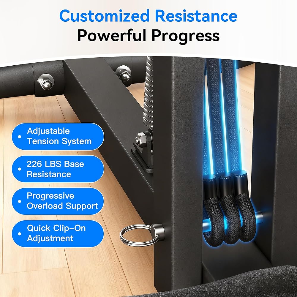 • 【مقاومة قابلة للتعديل لجميع المستويات】 قم بتخصيص الكثافة بمقاومة قابلة للتعديل بالإضافة إلى إعدادين للارتفاع و3 إعدادات للطول؛ استخدمه كمدرب للغلوت وآلة للتمرين على الغلوت للتدريب التدريجي في المنزل، كما أنه جهاز تدريب رائع للنساء