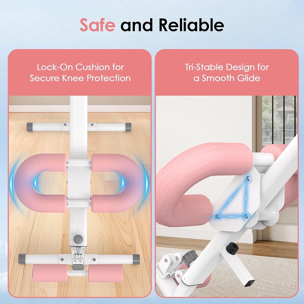 [نظام حماية مريح للركبة] استمتع بتجربة مدرب عضلات البطن الصديق للركبة الذي يتميز بتصميم بطانة واقية. تضمن وسادة الركبة وضعًا آمنًا أثناء جلسات تمرين المعدة المختلفة. يتضمن جهاز التدريب هذا القابل للتعديل آليات الأسطوانة الصامتة الثلاثية لتشغيل سلس. يمنع التصميم الهندسي المثلث الحركة من جانب إلى آخر أثناء حركات التمرين. استمتع بجلسات طويلة على هذا المدرب الأساسي دون أي إزعاج للمفاصل.