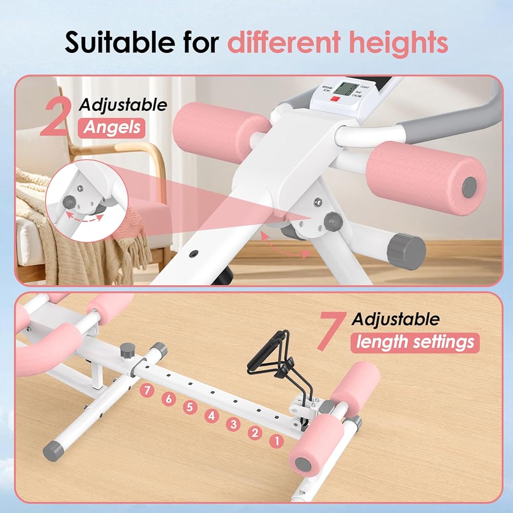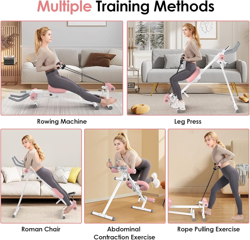 Multi Functional Adjustable Ab Trainer, Ab Machine for Stomach Workout, 5-in-1 Exercise Equipment: Rowing Machine, Leg Press Machine, Ab Glider Machine,Roman Chair,Resistance Bands with Handles