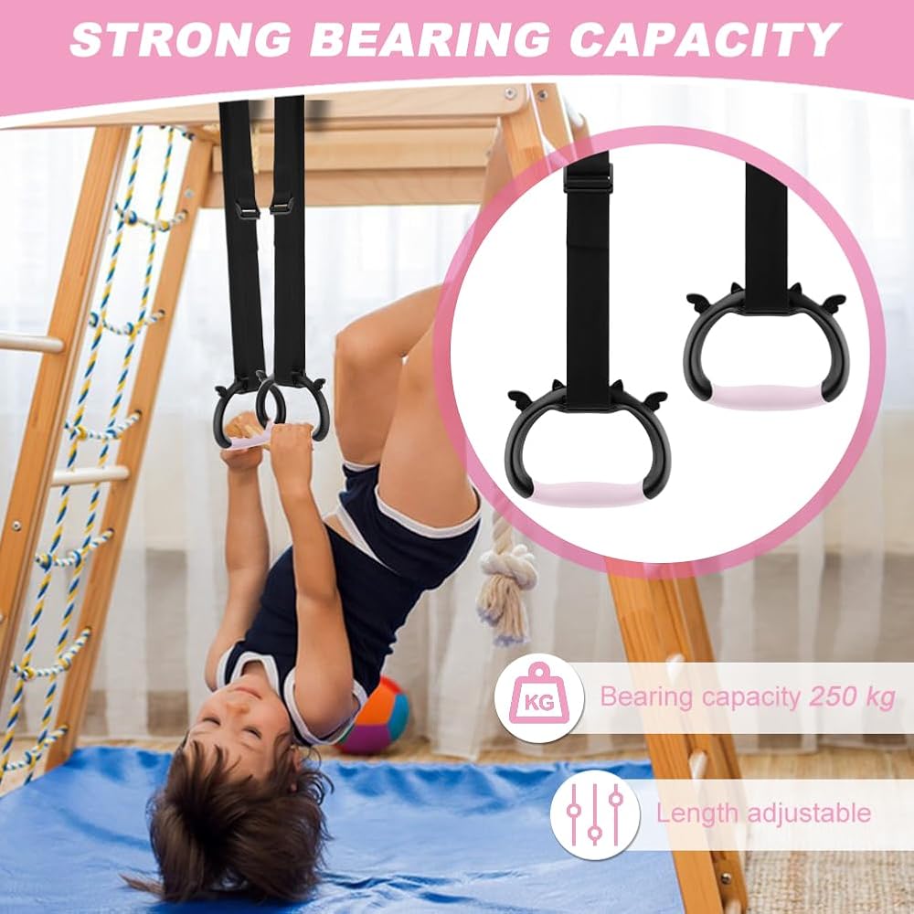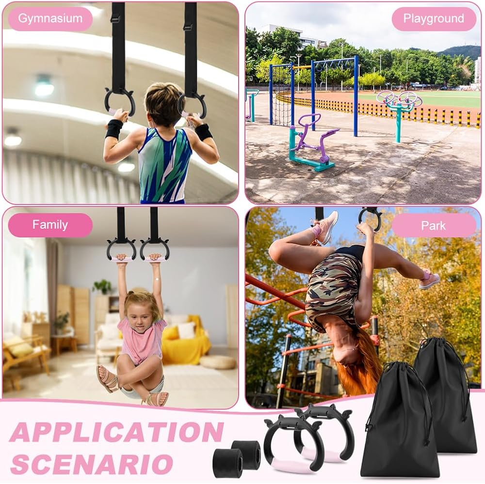 • 【Wide Application】Our lifting rings can be used indoors or outdoors, such as indoor gymnastic bars, pull up bar, porches, parks and so on. Use of gymnastics rings fitness pull-up rings helps toddler's growth, stretches, which can cultivate toddler's interest in sports and train the unification ability