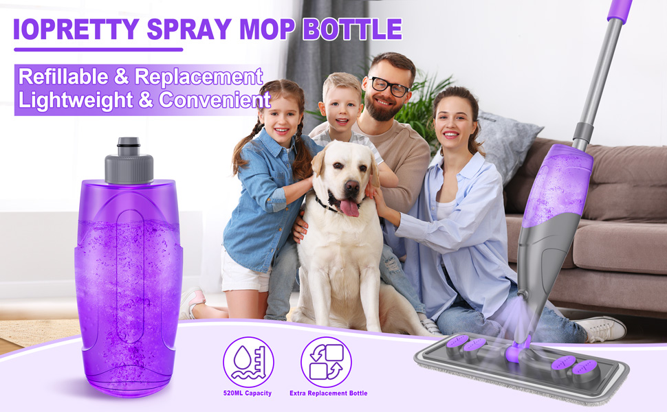 زجاجة قابلة لإعادة التعبئة سعة 520 مل لممسحة رش IOPRETTY: زجاجات بديلة لـ IOPRETTY فقط - خزان مياه لتنظيف الأرضيات متعددة الأسطح