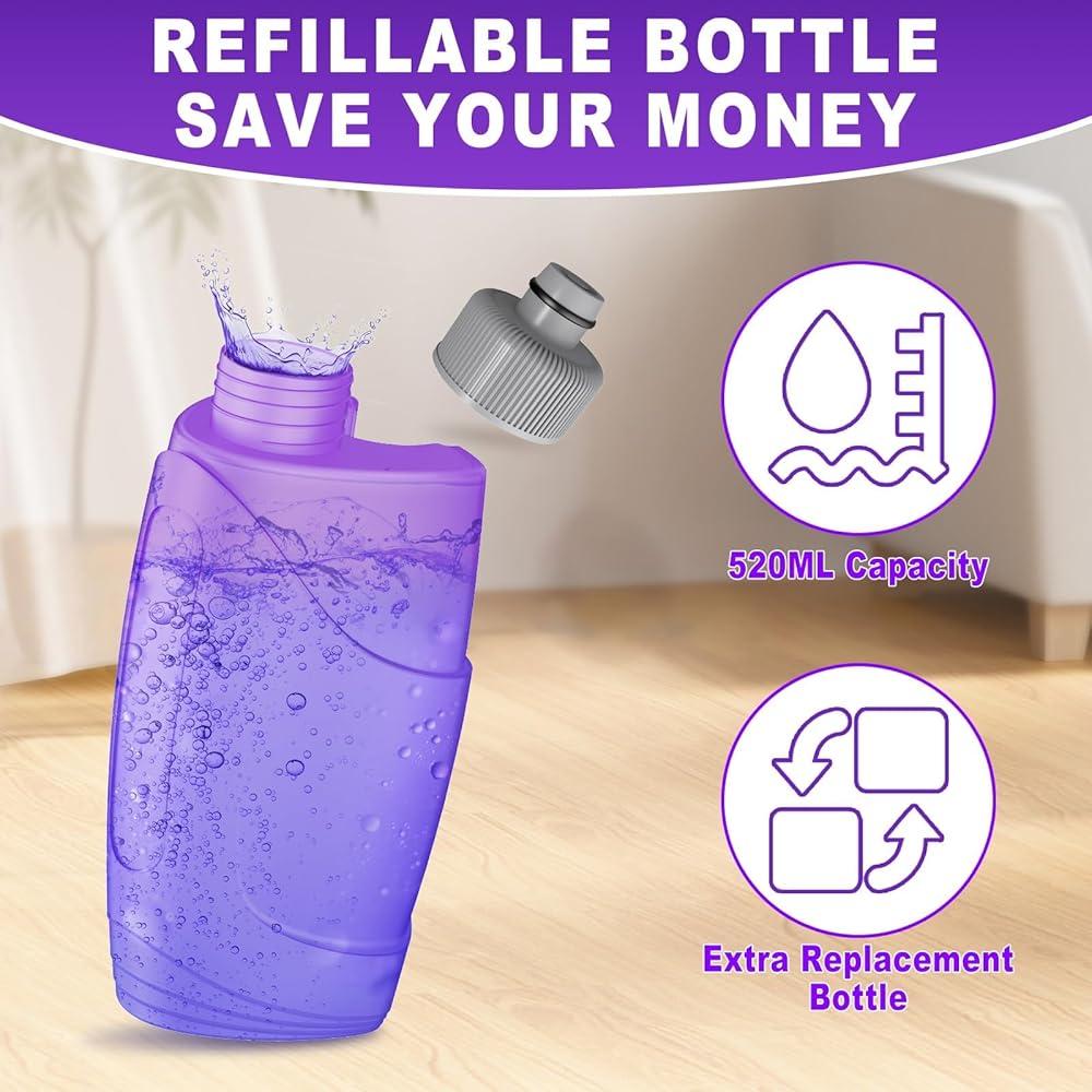 - زجاجة قابلة لإعادة التعبئة سعة 520 مل: يمكن ملؤها بعوامل تنظيف مختلفة لجعل الأرضية أكثر نظافة