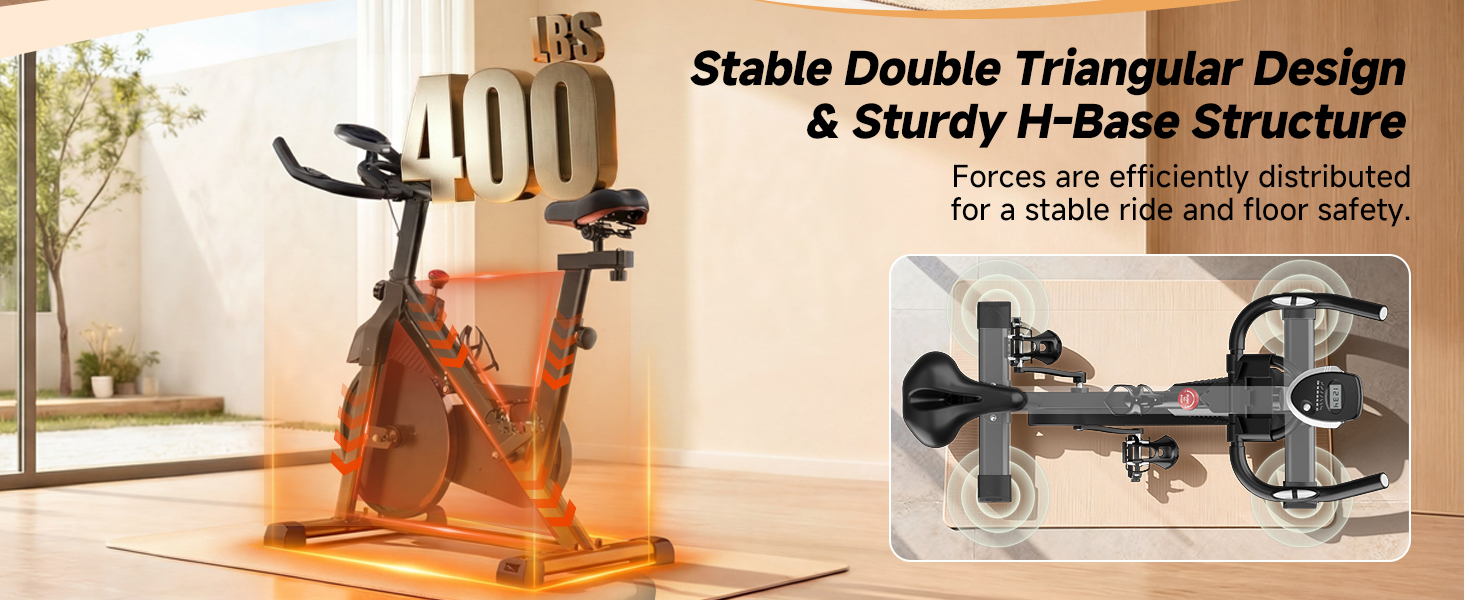 سعة 400 رطل مع تصميم ثبات محسّن: تم تصميم هذه الدراجة الثابتة لدعم ما يصل إلى 400 رطل، وتستخدم سبائك فولاذية سميكة من الدرجة التجارية وإطارًا معززًا ثنائي المثلث - تم تصميمه أثقل بنسبة 20%+ من معظم البدائل خفيفة الوزن المتوفرة في السوق. تتميز القاعدة شديدة التحمل على شكل حرف H بأقدام تسوية مبتكرة بدقة 13 مم لضبط سلس على الأرضيات غير المستوية. توفر هذه البنية القوية منصة تدريب ثابتة لسباقات السرعة الدائمة عالية الكثافة.