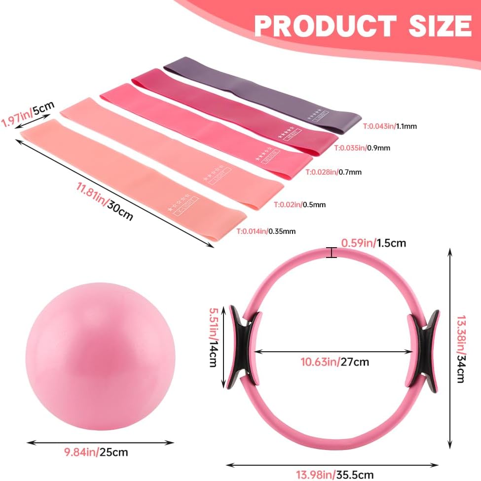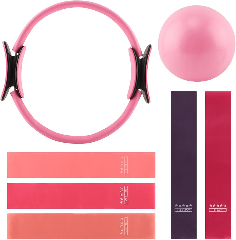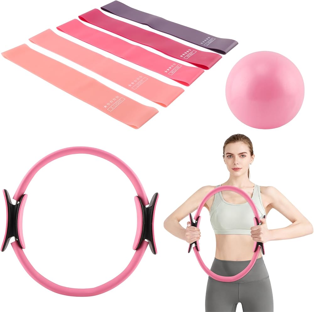 1. مجموعة حلقات بيلاتيس الكل في واحد: تتضمن مجموعة حلقات بيلاتيس كل ما تحتاجه: حلقة بيلاتيس مقاس 14 بوصة، وكرة صغيرة مقاس 9.8 بوصة، وخمسة أشرطة مقاومة - مثالية لتدريبات الجسم بالكامل في المنزل أو أثناء السفر.
