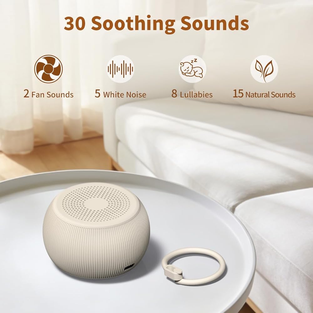 ❤【30 Non-Looping Sleep Sounds】30 soothing sounds, consisting of Loud Fan Soft Fan, 5 White Noise (brown noise, pink noise, white noise), 8 Lullabies, and 15 Natural Sounds (such as Brook, Sea Waves, Rai, Birds ,Campfire etc.). There are soothing whispers that can provide a sense of security for babies. They can improve sleep and enhance concentration. The most powerful sound effects can use natural sounds non-looping sleep sounds to mask noise neighbors, barking dogs, partner's snoring, traffic noise and background noises, creating a peaceful and immersive sleep environment. You can maintain your sleep habits during travel and relax while focusing on study and work.