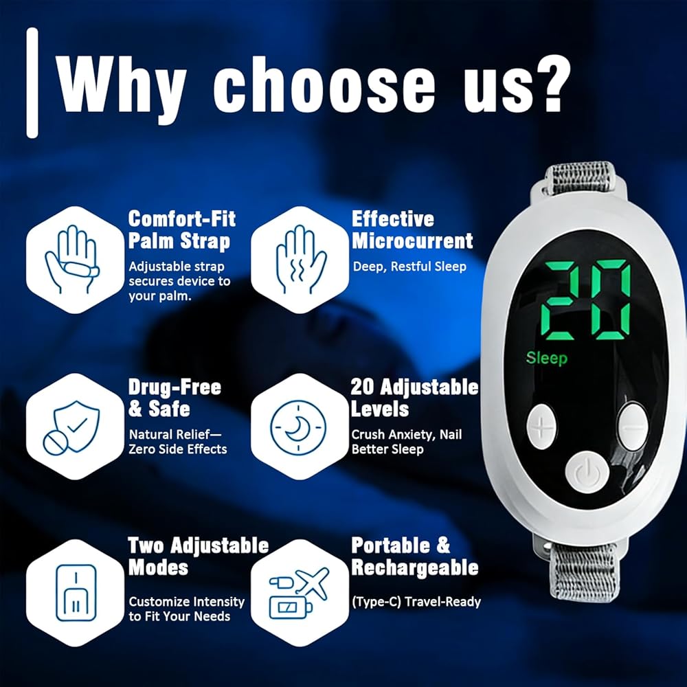 جهاز محمول للمساعدة في النوم، جهاز للقلق، يساعد على تخفيف القلق على النوم، ويعزز الراحة، قابل لإعادة الشحن عبر USB لتخفيف التوتر، ونوبات الذعر والإثارة، وتحسين النوم، والمزاج والتركيز