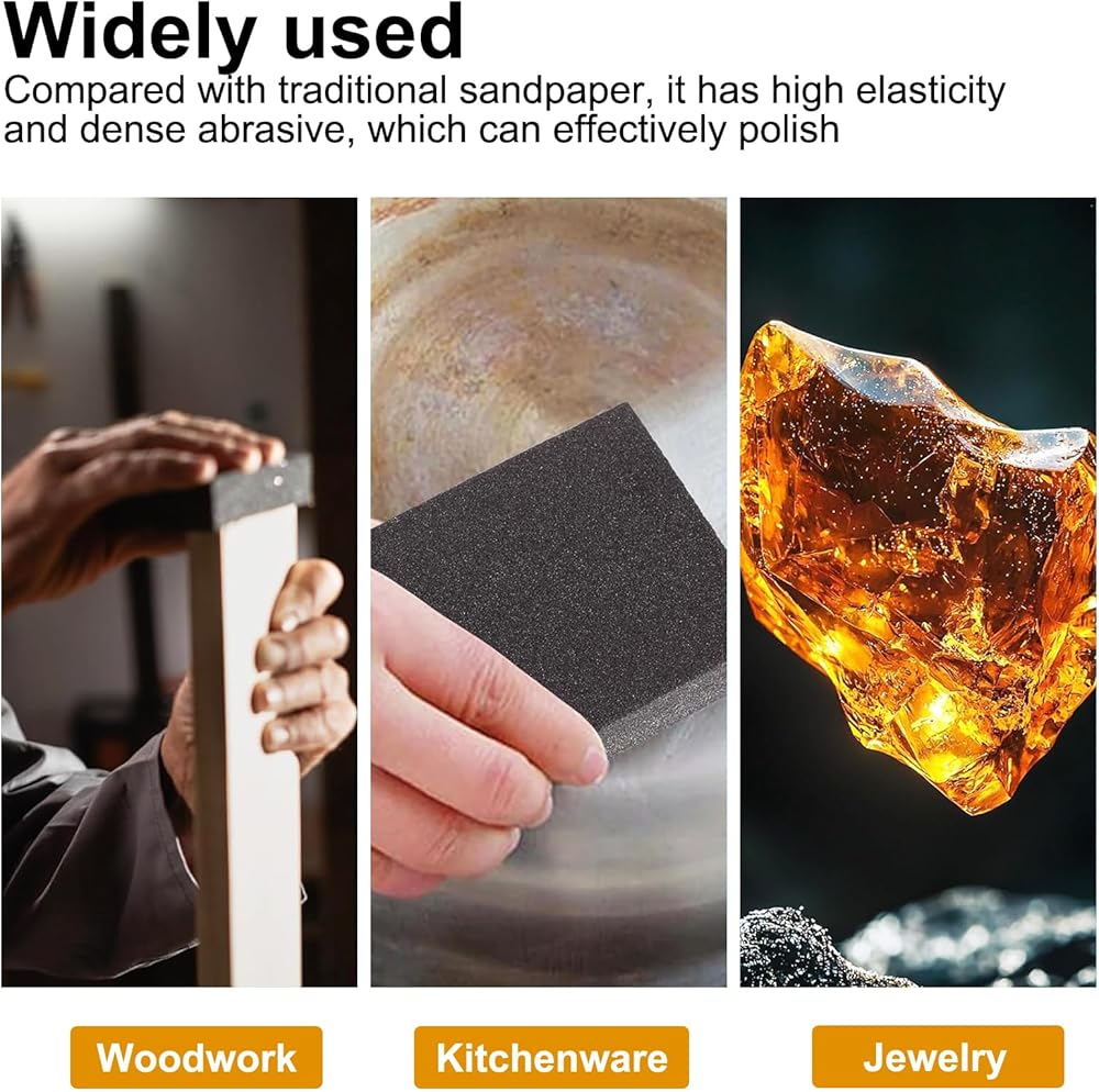 1. Premium Material: Made of durable, high-density sponge with a layer of adherent, non-flaking abrasives for long-lasting durability.