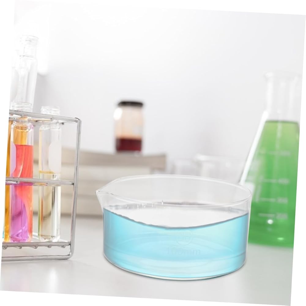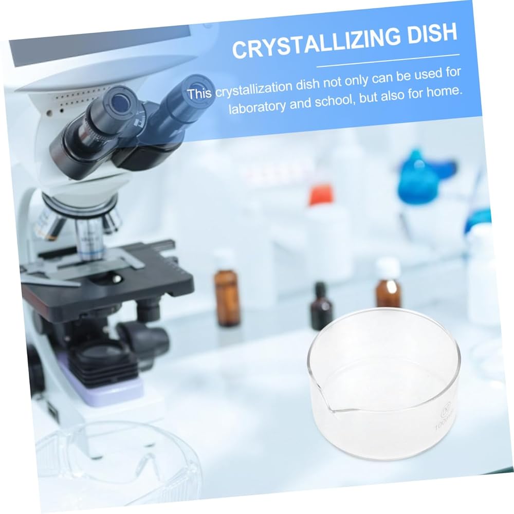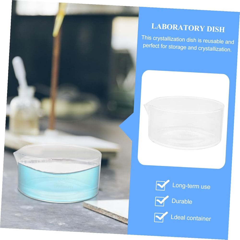 chemical glassware Large surface area, enlarge heating surface and evaporation surface.Crystallizing Laboratory Dish This item is a crystallization dish used for laboratory crystallization test, or liquid recrystallization, in order to achieve the purpose of refining, purification.Crystallizing Dish with Spout Not only can be used for laboratory and school, but also for home