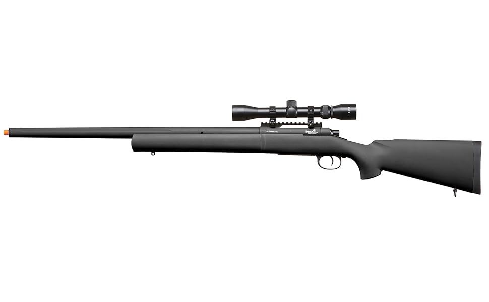لانسر التكتيكي M24 500 FPS Bolt Action Airsoft Sniper VSR-10 مع نطاق بندقية Airsoft (ملولبة) (اللون: أسود)