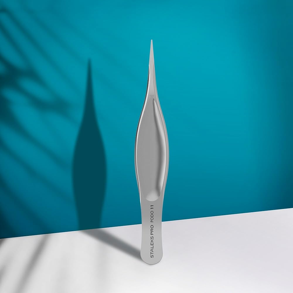 The Staleks PRO Podo 11 Splinter Tweezers are designed specifically for podiatrists, pedicurists, and medical professionals requiring precision and safety during foot care treatments. Perfect for removing ingrown nails, calluses, epidermal fragments, or foreign bodies, these tweezers feature a thin, elongated working part with a secure grip and smooth ergonomic handle for comfortable use. Manufactured from AISI 420 high-grade stainless steel, the Podo 11 ensures corrosion resistance, sterilization compatibility, and long-lasting sharpness. Its hand-polished surface prevents tissue damage and enhances safety during podiatric or cosmetic procedures. Compact, durable, and designed for professional accuracy — an essential tool for medical pedicures and podology treatments.