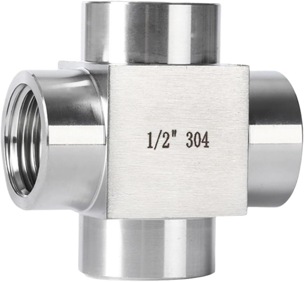 - 304 Stainless Steel Female Crosses Pipe Fittings Connector Thread BSPP 1/4"3/8"1/2" 3/4" High Pressure 6000psi