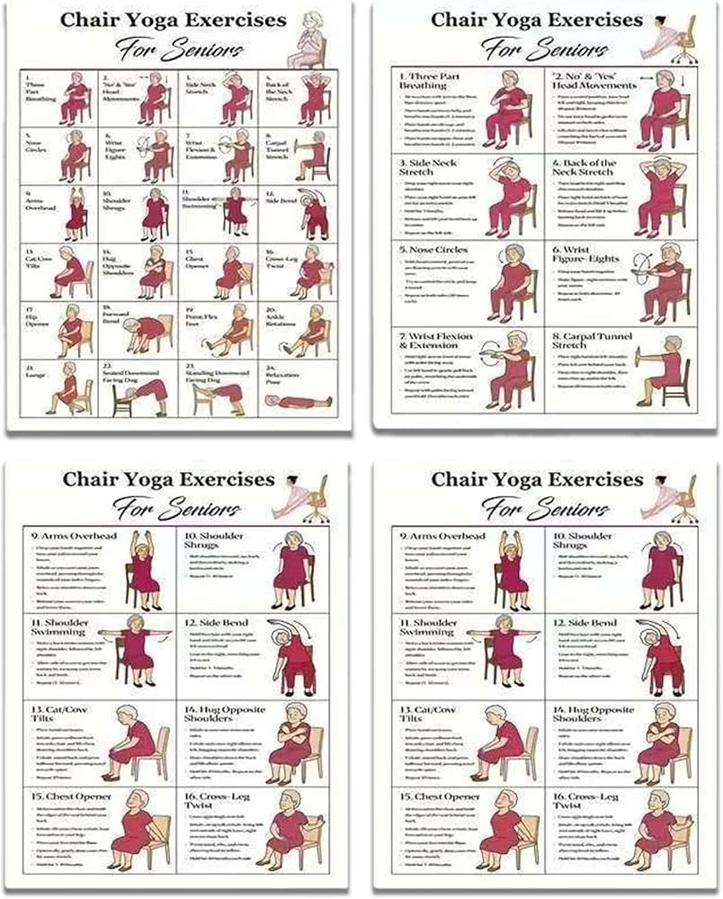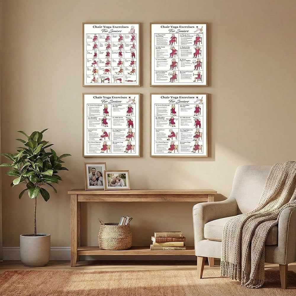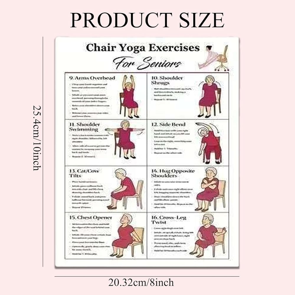【Chair Yoga Set】The set includes 4 illustrated chair yoga pose guides. Each 8""x10"" poster features large, clear illustrations and simple step-by-step instructions, making it easy to follow along and perform each movement correctly and safely. Designed for older adults and beginners, this set makes gentle, seated exercises easy and accessible.