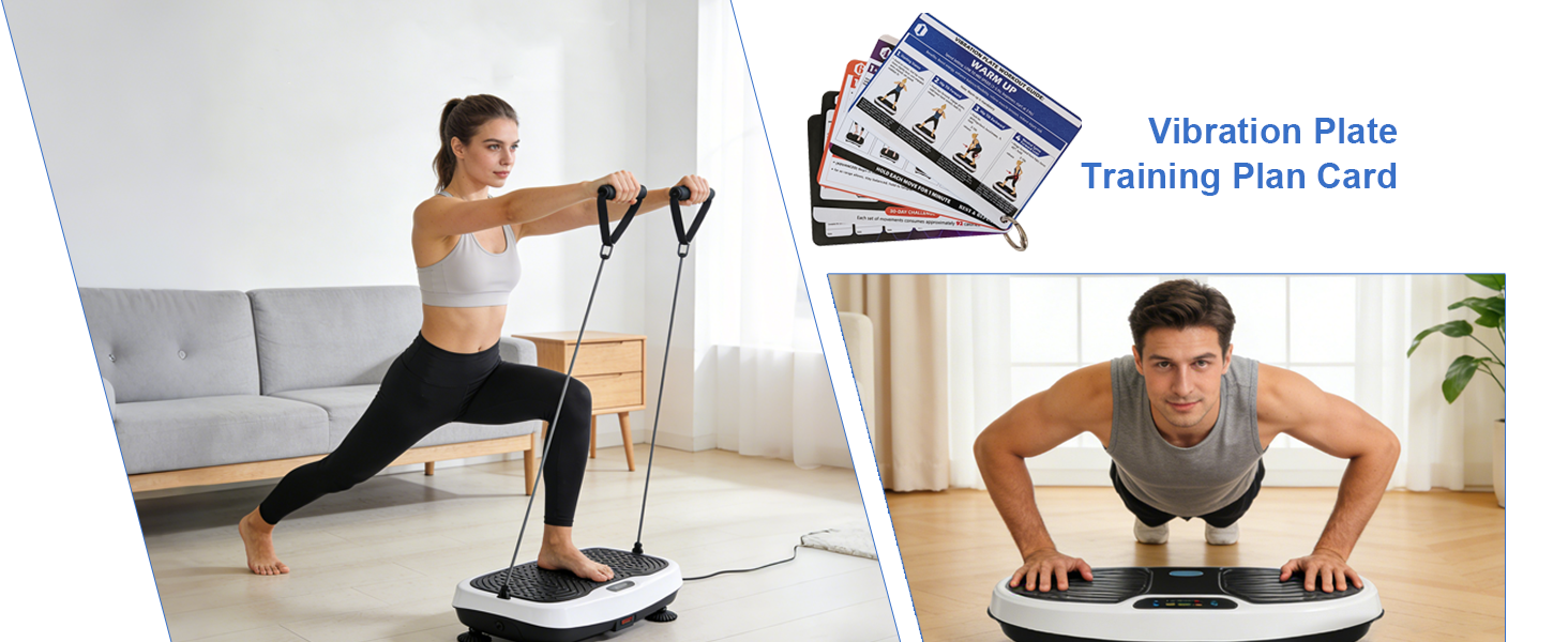 بطاقات مخطط التمرين بلوحة الاهتزاز، 5 بطاقات دليل مزدوجة الجوانب مع سجل تدريب لمدة 30 يومًا، مجموعة روتين اللياقة البدنية المحمولة للاستخدام المنزلي، ملحقات تتبع فقدان الوزن والتمارين الرياضية