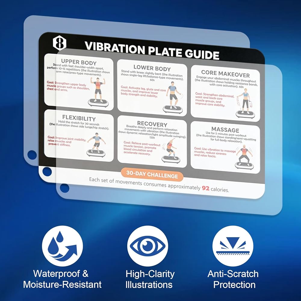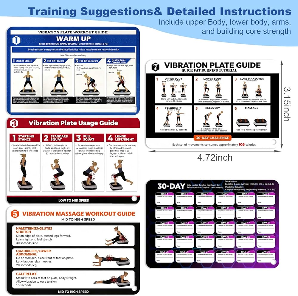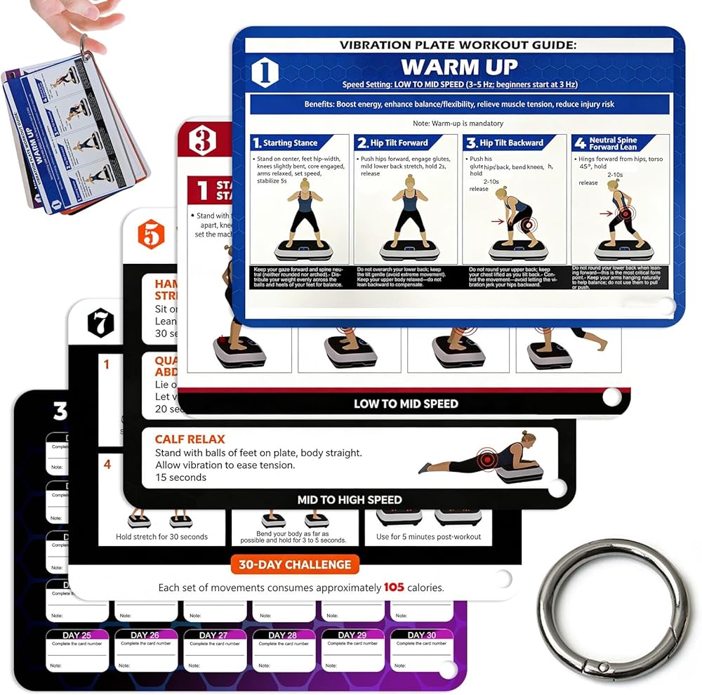 شركة ملائمة متعددة الاستخدامات - متوافقة مع معظم لوحات الاهتزاز، توفر هذه البطاقات إرشادات منظمة للدعم اللمفاوي والقوة والمرونة. هدية عملية لأي شخص يعزز نظام التمرين المنزلي الخاص به.