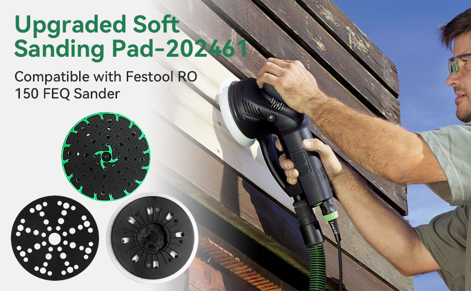 توافق مثالي ومجموعة كاملة مصممة كبديل مباشر، متوافقة مع آلات الصنفرة Festool RO 150 FEQ وRotex 150. تعمل هذه الوسادة مقاس 6 بوصات بسلاسة مع أقراص الصنفرة مقاس 6 بوصات. تتضمن العبوة كلاً من وسادة الصنفرة الناعمة (الموديل: 202461) ووسادة الحماية، مما يوفر لك حلاً كاملاً وجاهزًا للاستخدام بمجرد إخراجها من الصندوق.