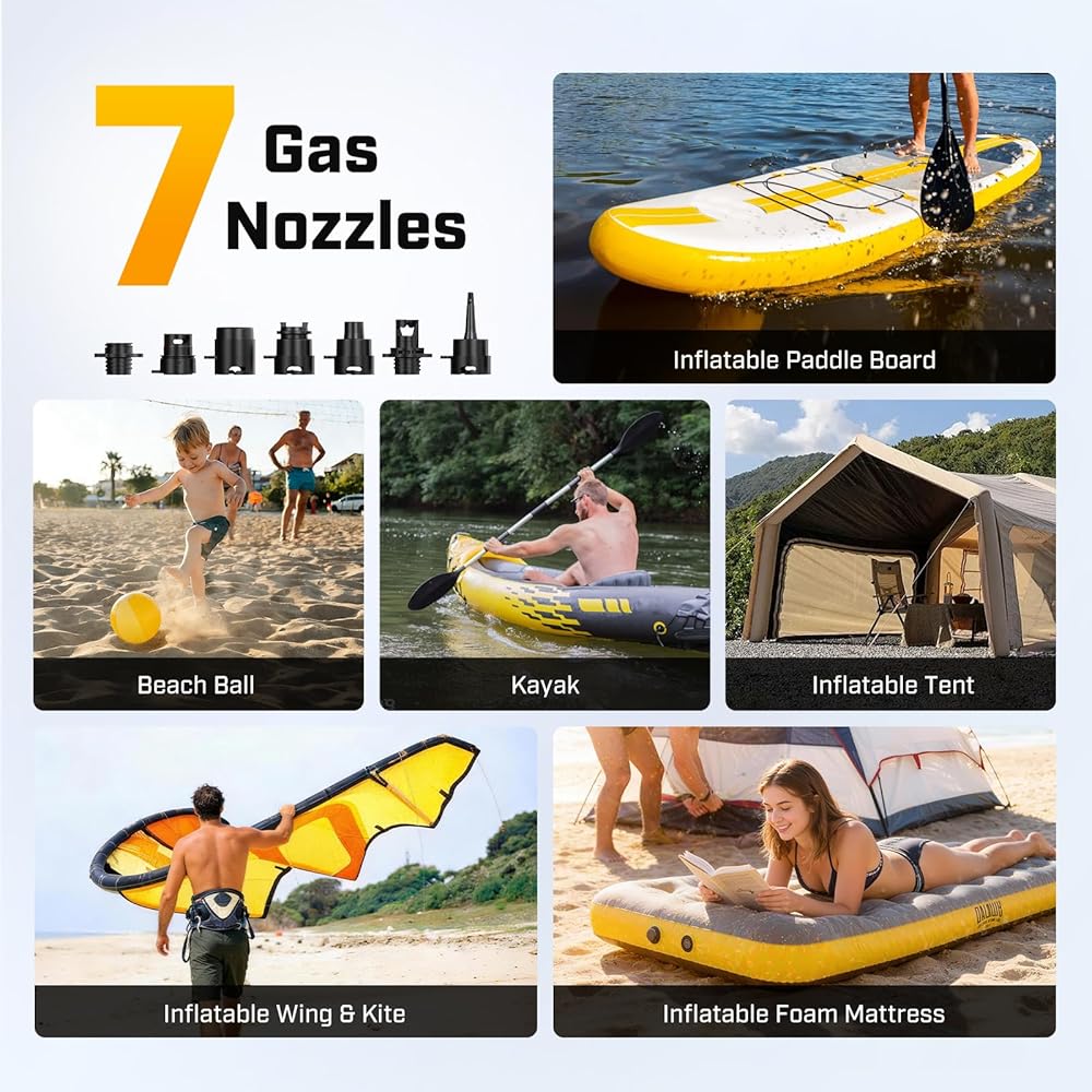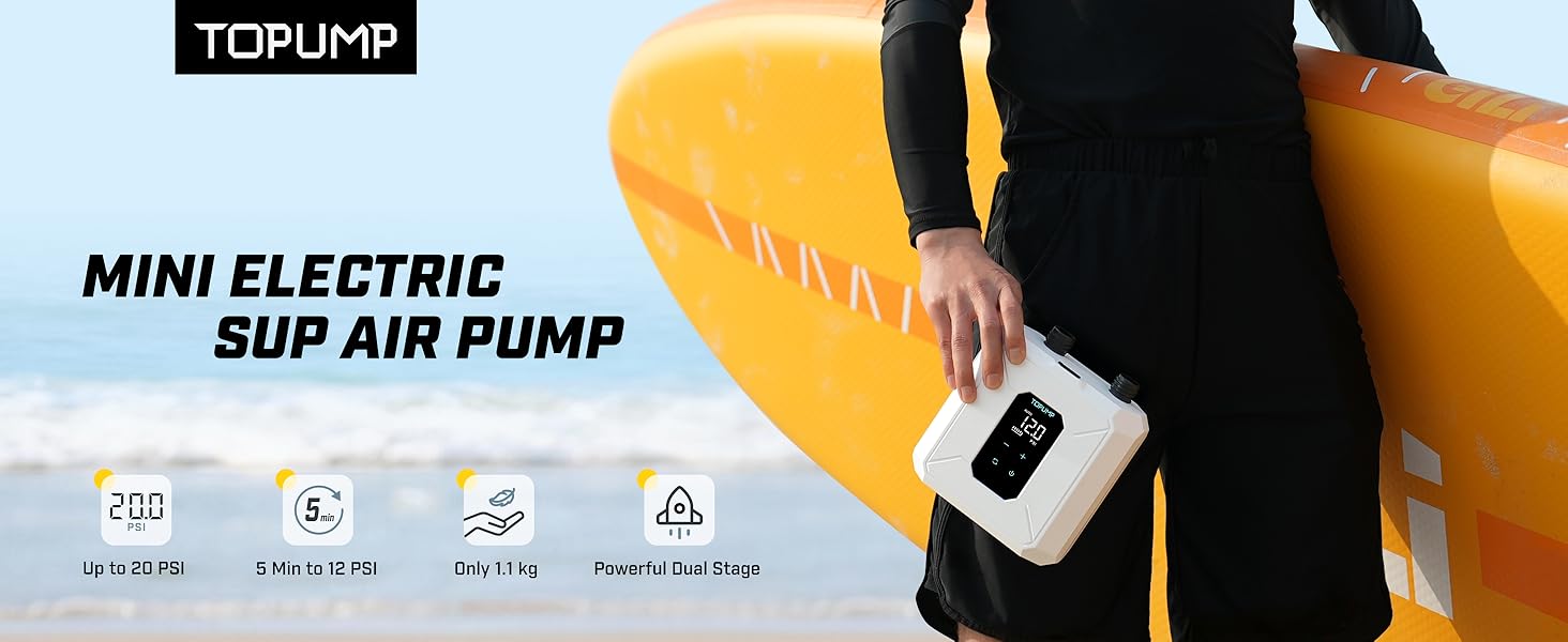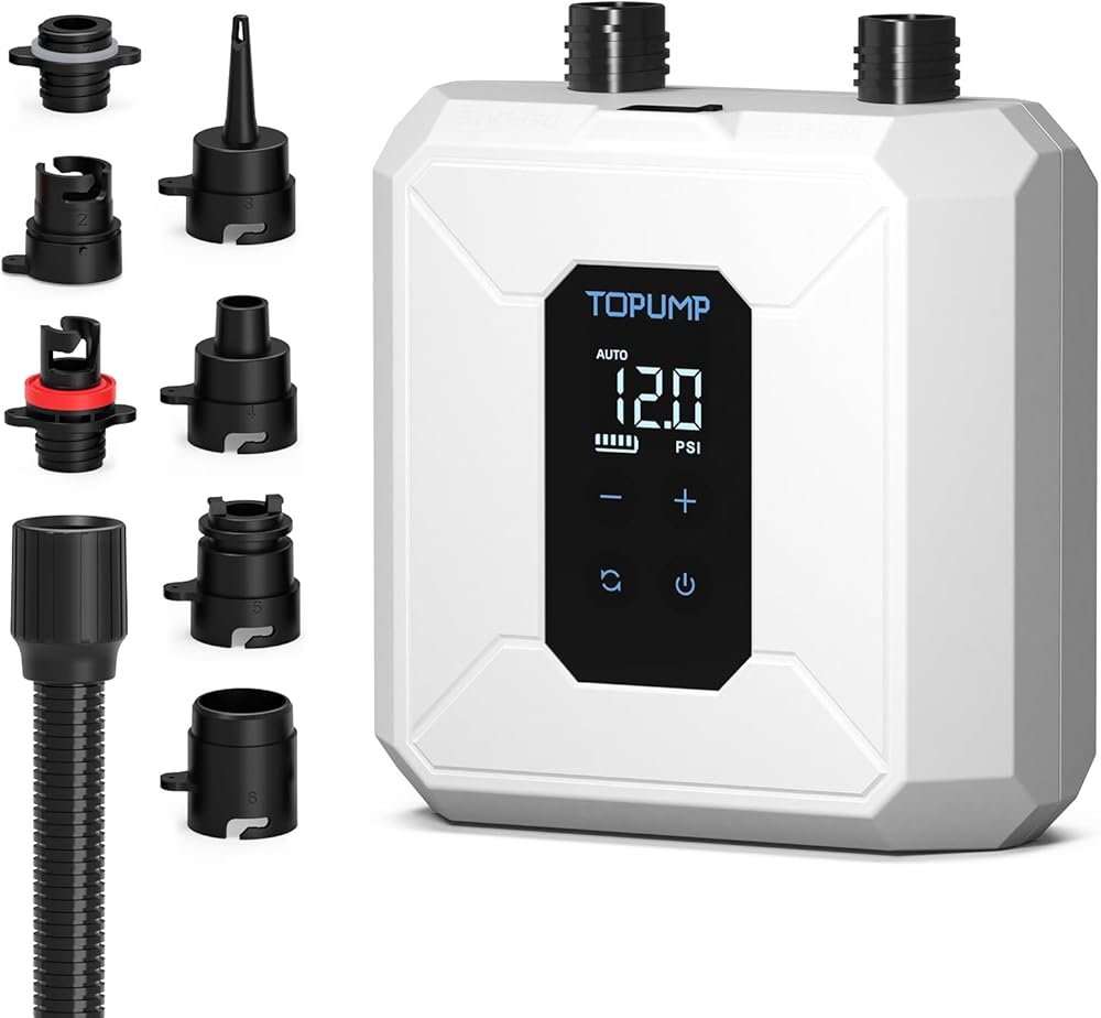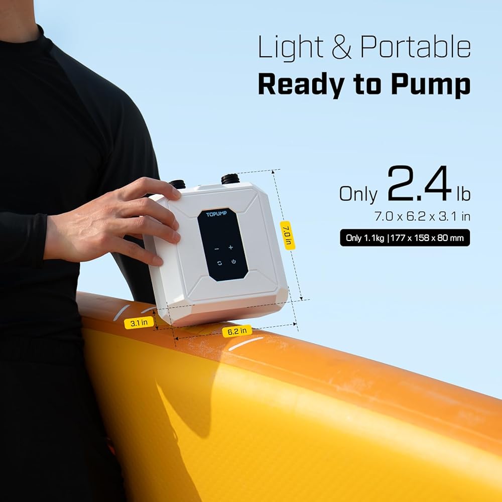 التوافق مع جميع المشاهد. 7 فوهات لـ SUPs والقوارب وزوارق الكاياك والخيام والمزيد - رحلات الشاطئ إلى مغامرات التخييم. يتم دعم مضخة TOPUMP SUP بضمان لمدة عامين ودعم على مدار الساعة طوال أيام الأسبوع.