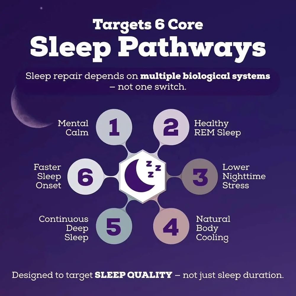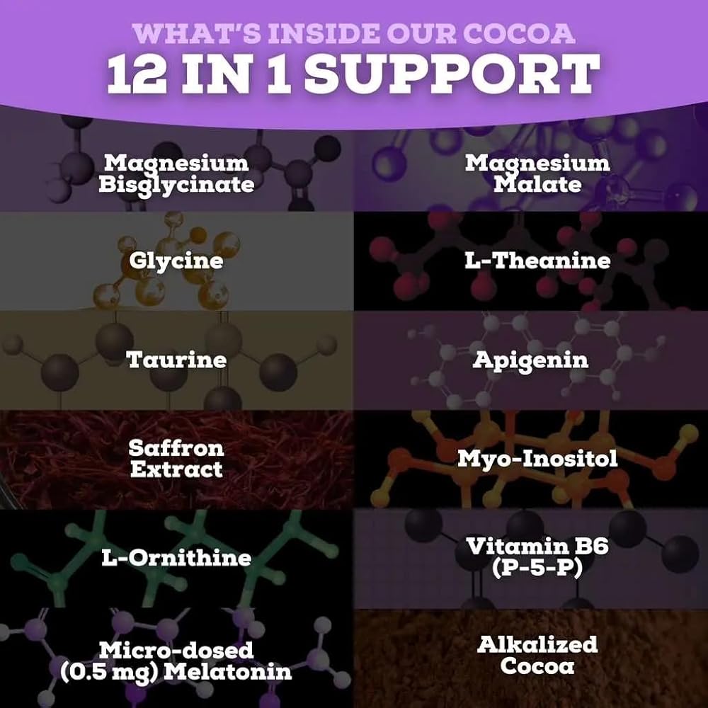يستهدف 6 مسارات أساسية - يعالج كاكاو المغنيسيوم هذا الهدوء العقلي، وبدء النوم بشكل أسرع، والنوم العميق المستمر، ودورات حركة العين السريعة الصحية، وتقليل التوتر، والتبريد الطبيعي. تركيبة 12 في 1 تتضمن الأبيجينين والتورين ومستخلص الزعفران.