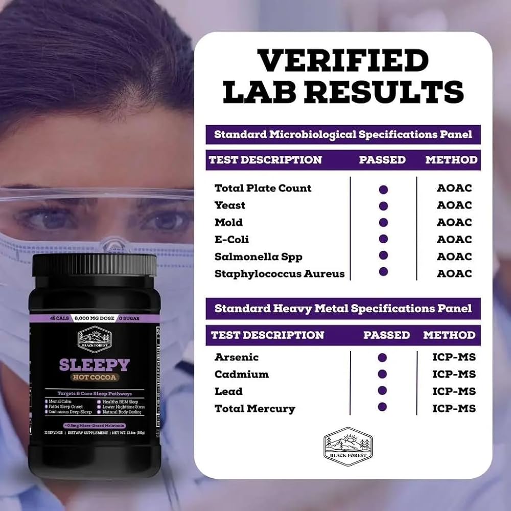 تم اختباره من قبل طرف ثالث - تم التحقق من نقاوة مكمل النوم للبالغين (تم اجتياز المواصفات الميكروبيولوجية والمعادن الثقيلة). صُنع في منشأة الولايات المتحدة الأمريكية بمكونات غير معدلة وراثيًا. يذوب على الفور في الماء الساخن للحصول على مشروب مريح للاسترخاء.