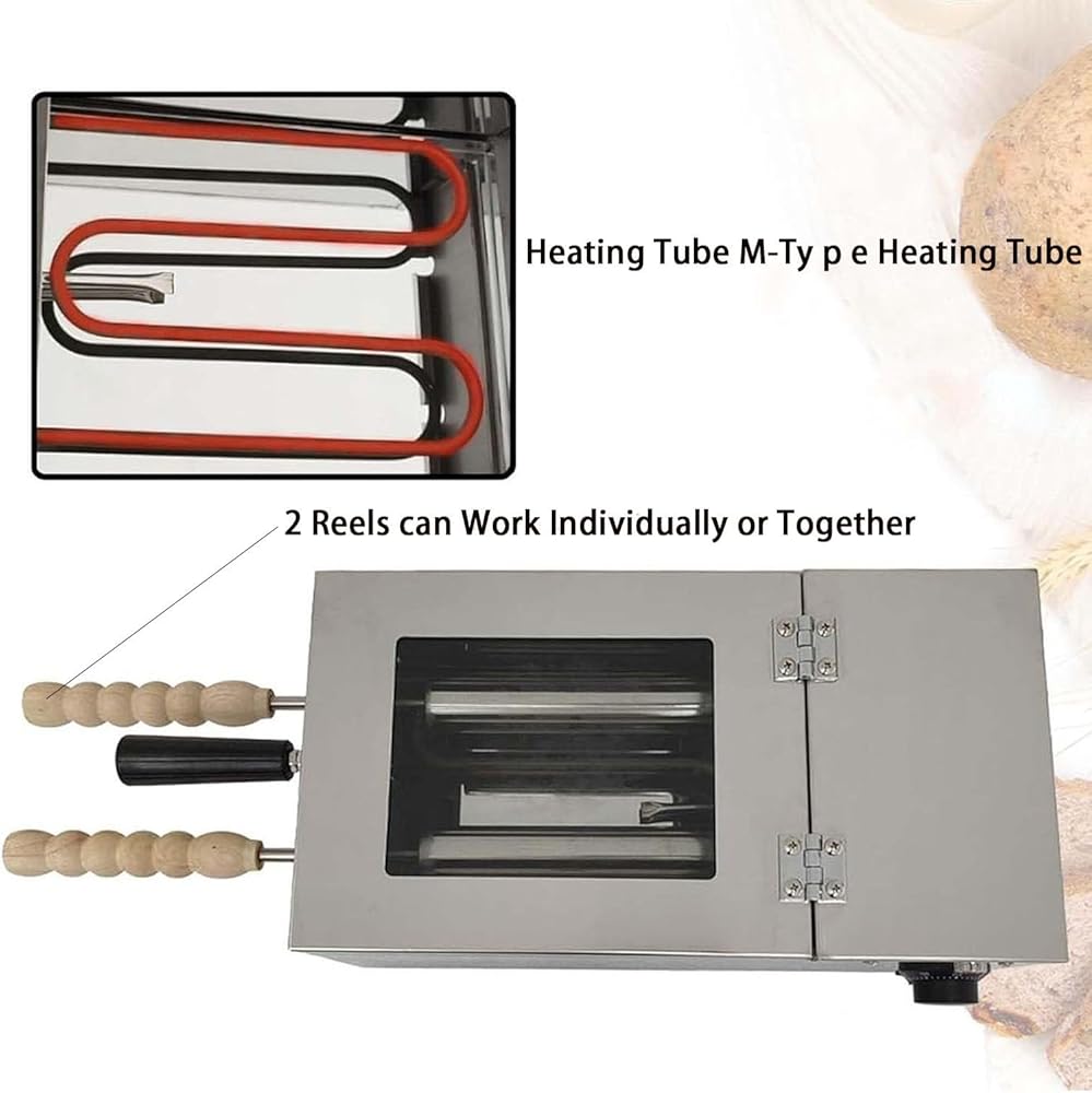 【Powerful Efficiency】This oven is equipped with a powerful 1500W heating element and a baking drum with a solid wood handle, which can bake delicious tree pies quickly and evenly. The rapid rotation ensures a crispy exterior while keeping the inside fluffy and moist, releasing an irresistible buttery aroma.