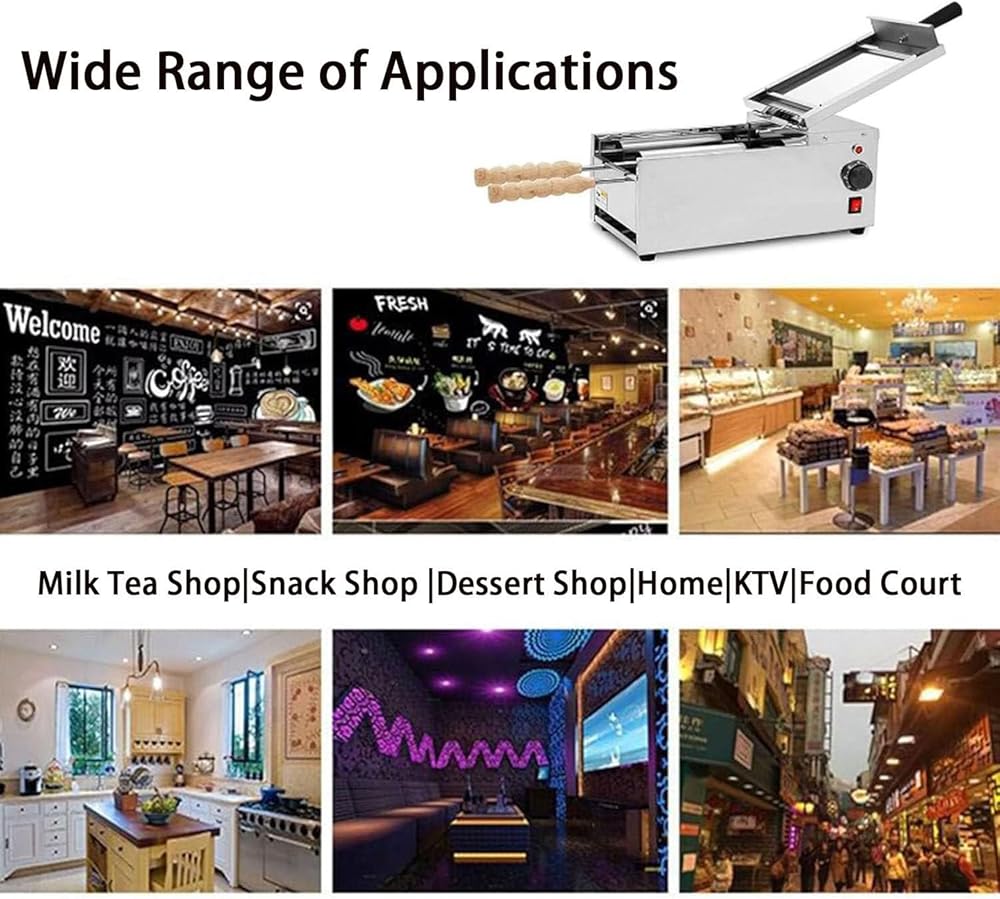 【Widely Application】Our electric chimney cake maker is perfect for any home or commercial kitchen, The chimney cake maker is best tool of producing ice cream cake cones, widely used in dessert shop, coffee shop, snack bar, party, etc.
