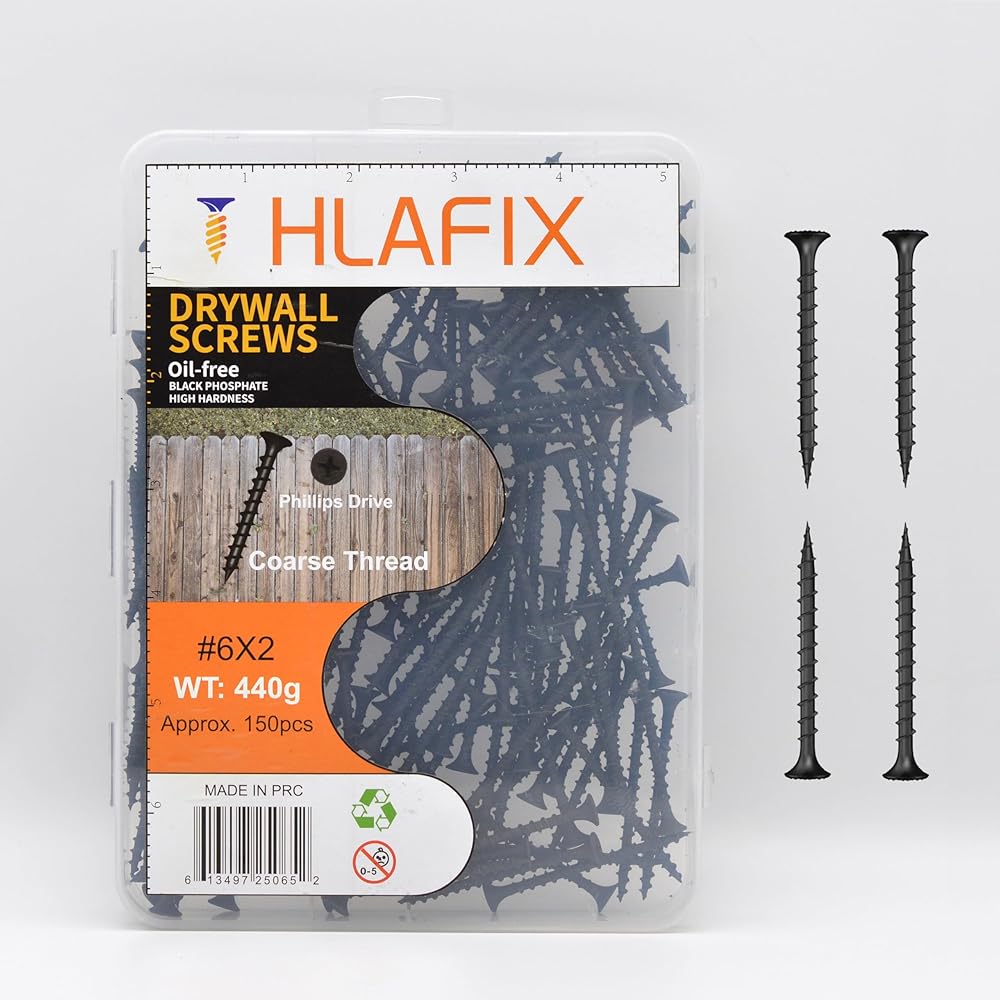 مسامير تثبيت للجدران الجافة، فوسفات أسود وزيت مضاد للصدأ، برغي خشبي ذو رأس حاد من فيليبس بوغل، برغي مثالي لصفائح الحوائط الجافة، 153 قطعة (#6x2)