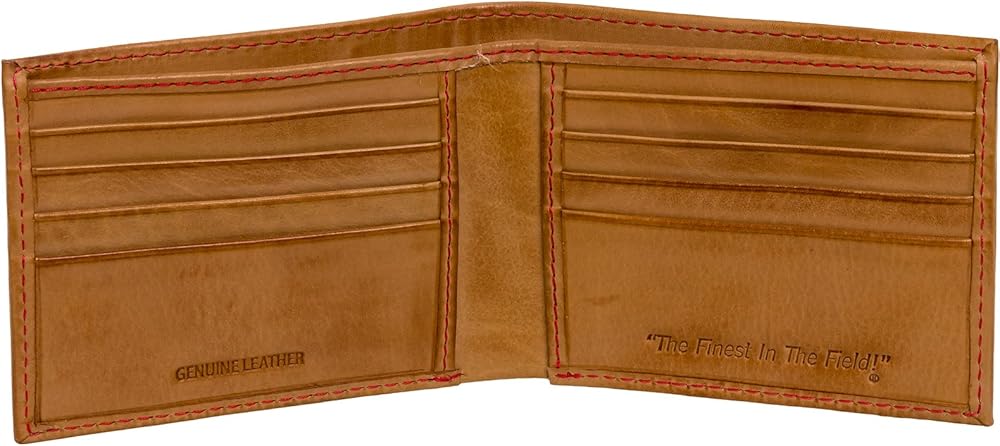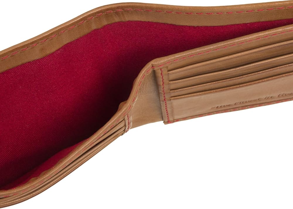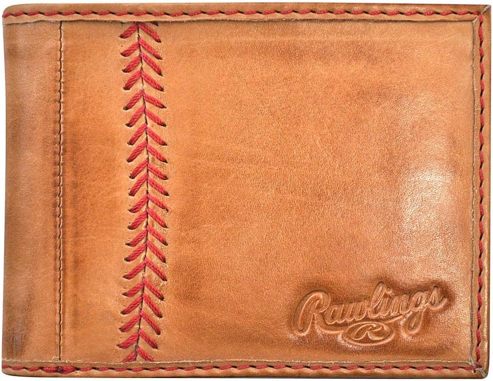 The ناعمة و جلد أسود سمات محفظة من الجلد بقابلية طي ثنائي سوداء اللون الأحمر البيسبول بغرز بارزة التي تجعل من هذه المحفظة مميز ً ا بين الحشود. The الأيقونية Rawlings المطرز باللون الأحمر الملصق عبارة عن الموجود في الجزء الداخلي من المحفظة. يأتي هذا بقابلية طي ثنائي سوداء اللون مزودة: 4 فتحات لبطاقات الائتمان ، 2 جيب انزلاقي وتصميم ً ا وفتحة نقود واحدة.