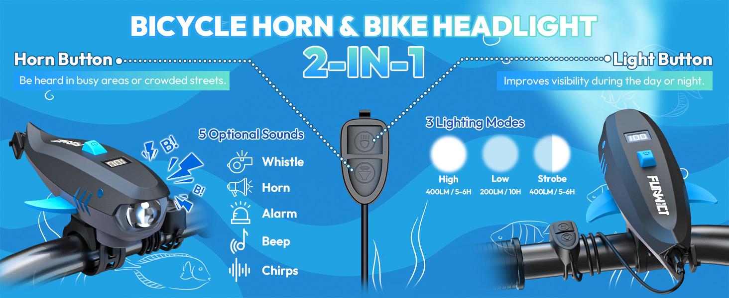 السلامة الليلية الساطعة: يتميز بوق الدراجة المزود بالضوء بإضاءة أمامية مدمجة بقوة 400 لومن تضمن بقاء طفلك مرئيًا للغاية أثناء الركوب ليلاً، مما يعزز السلامة الليلية. تلبي أوضاع الإضاءة الثلاثة احتياجات بيئة الركوب المختلفة.