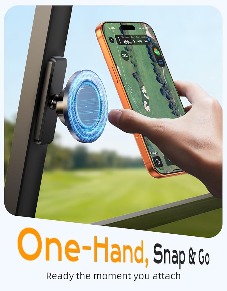 [متوافق عالميًا مع جميع الهواتف والعربات] يتوافق حامل الهاتف المغناطيسي للجولف الخاص بنا مع سلسلة iPhone 17/16/15/14/13/12 ومتوافق مع جميع حافظات MagSafe. بالنسبة للأجهزة التي لا تعمل بنظام MagSafe Android أو أجهزة iPhone الأقدم، توفر الحلقة المعدنية الرفيعة المضمنة سهولة التركيب المغناطيسي. تلتصق القاعدة المغناطيسية بجميع الأسطح المعدنية وتناسب العلامات التجارية الرئيسية لعربات الجولف مثل EZGO وClub Car وYamaha - مما يوفر أقصى قدر من التنوع والإمساك الآمن.