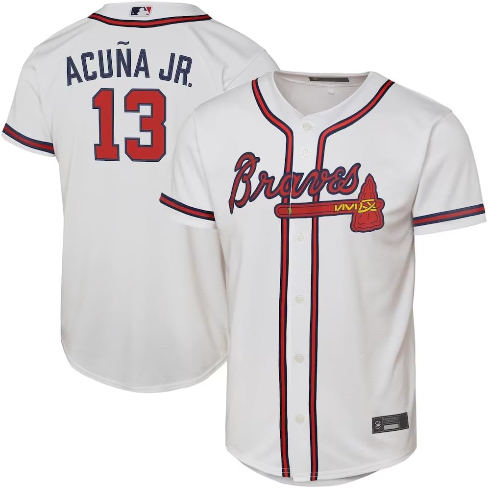 Your kiddo can commemorate one of the top players in MLB with this Atlanta Braves Ronald Acuna Jr. Official Cool Base Player jersey. It features attention-grabbing team and player graphics that any fan would look forward to showing off.