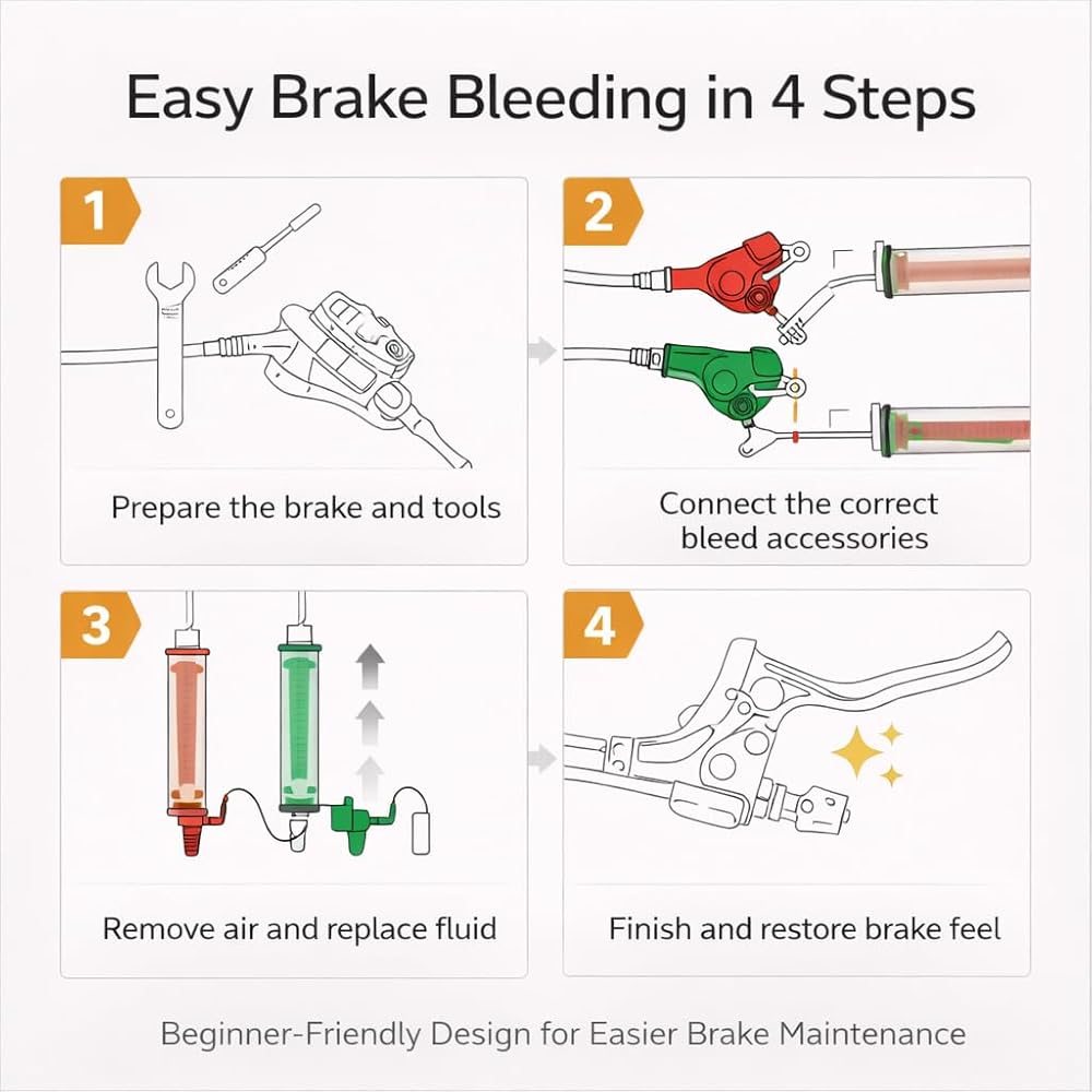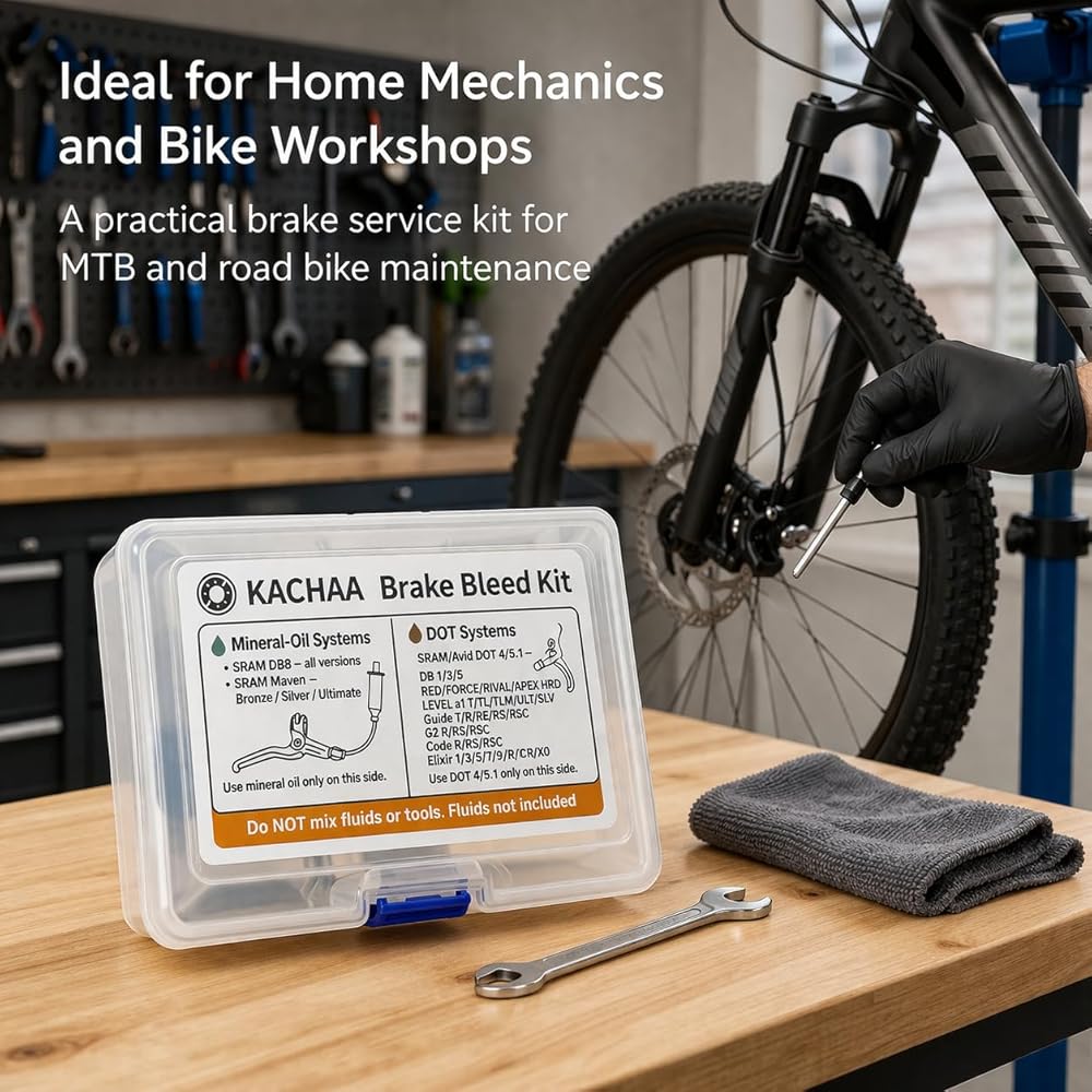 لخدمة MTB & Road Bike: مجموعة ورشة عمل عملية لصيانة الفرامل، واستبدال السوائل، وإزالة الهواء، واستعادة الشعور بالرافعة.
