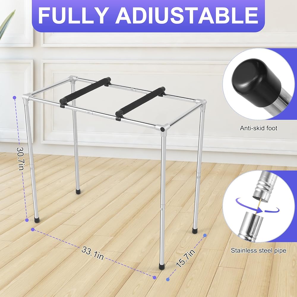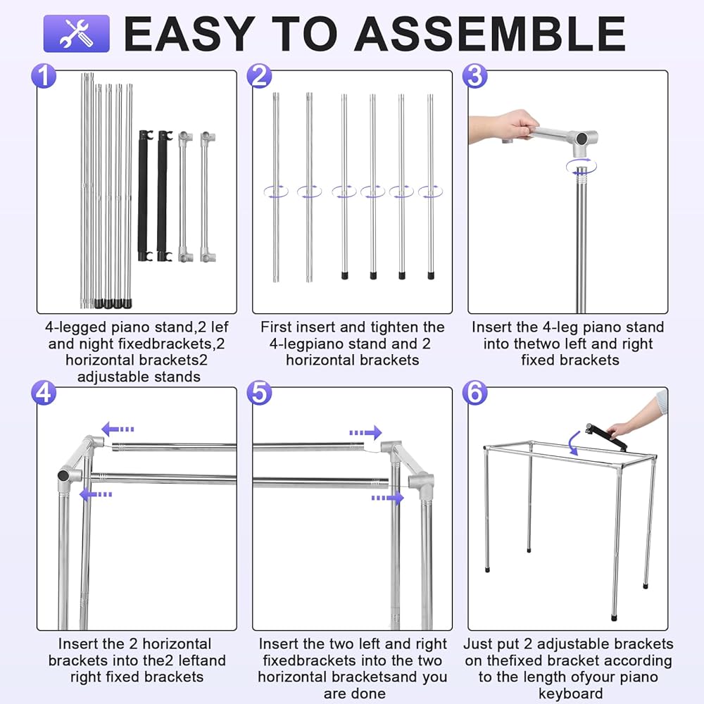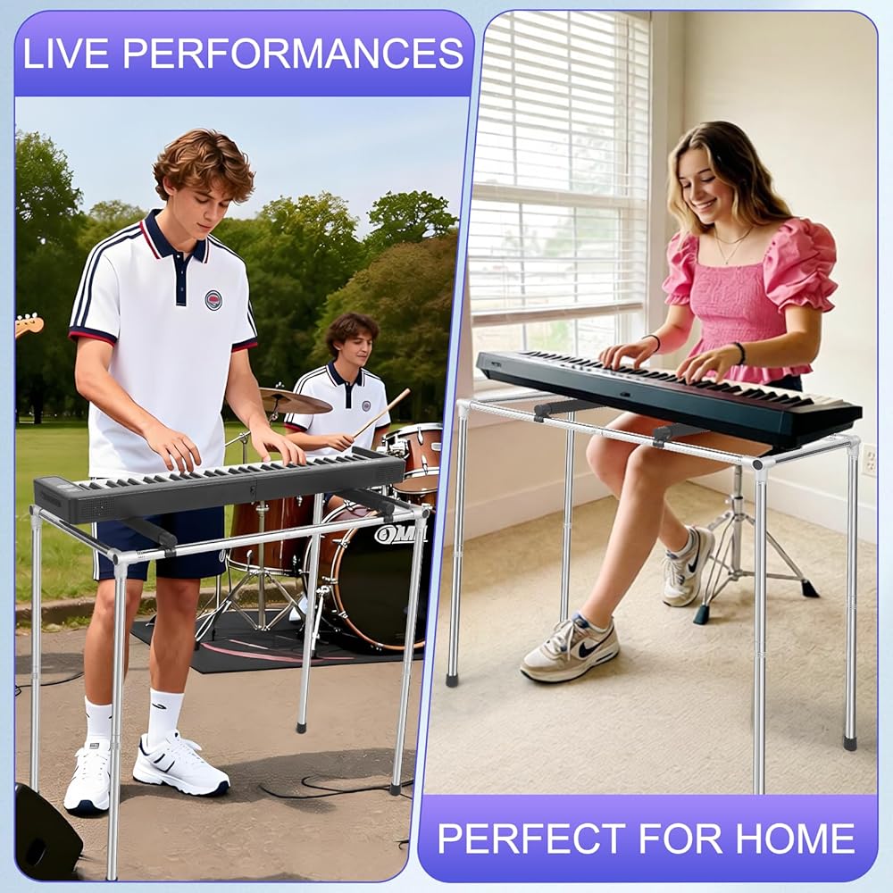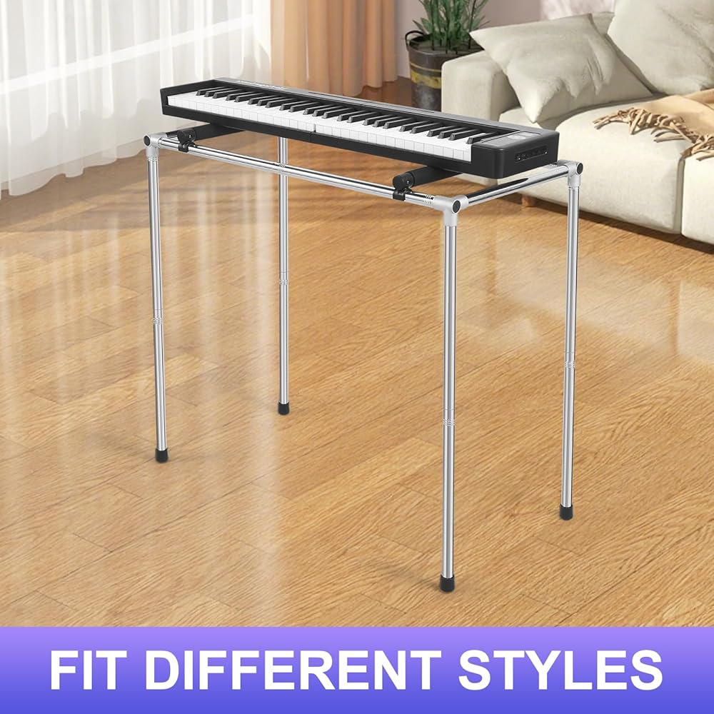 حامل لوحة مفاتيح البيانو بطول قابل للتعديل - إطار من الفولاذ المقاوم للصدأ، تصميم متحرك للوحات المفاتيح الإلكترونية والبيانو | صغير الحجم موفر للمساحة، وثابت للسجاد، ومساحة إضافية للأرجل | مثالية للأطفال والكبار