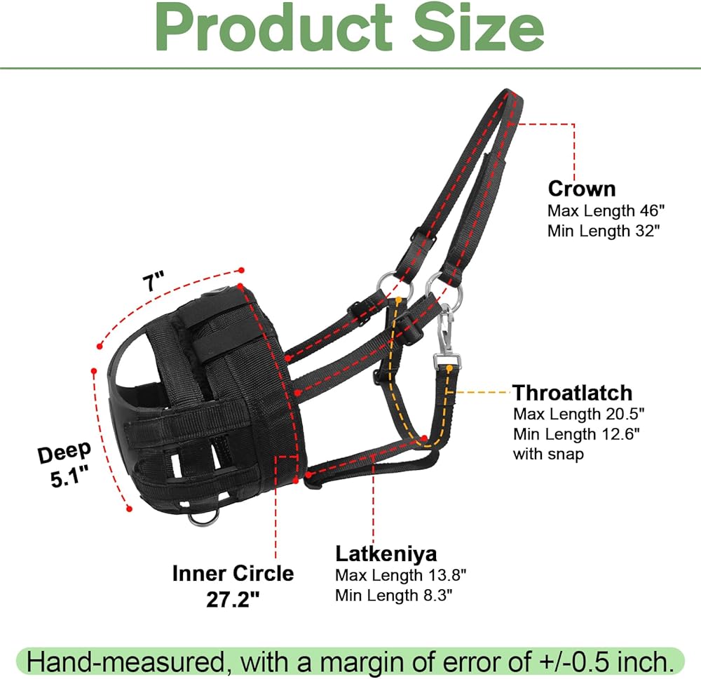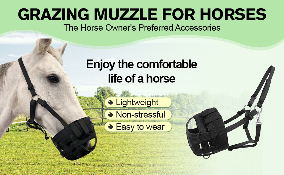 مادة ممتازة - كمامة رعي الخيل مصنوعة من النايلون عالي الجودة لمتانة طويلة. تم دمج فتحات التهوية المتعددة في سطح المنتج لتعزيز التهوية.