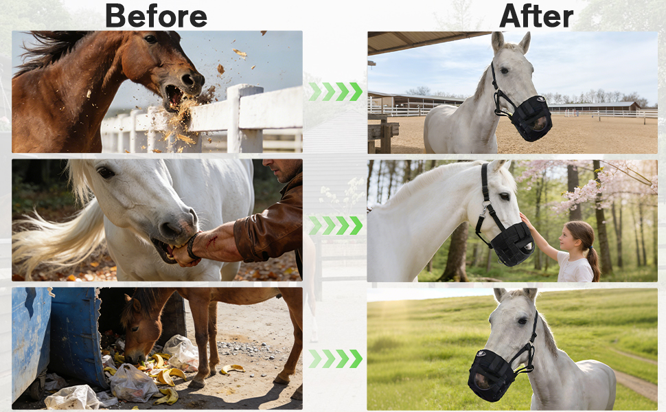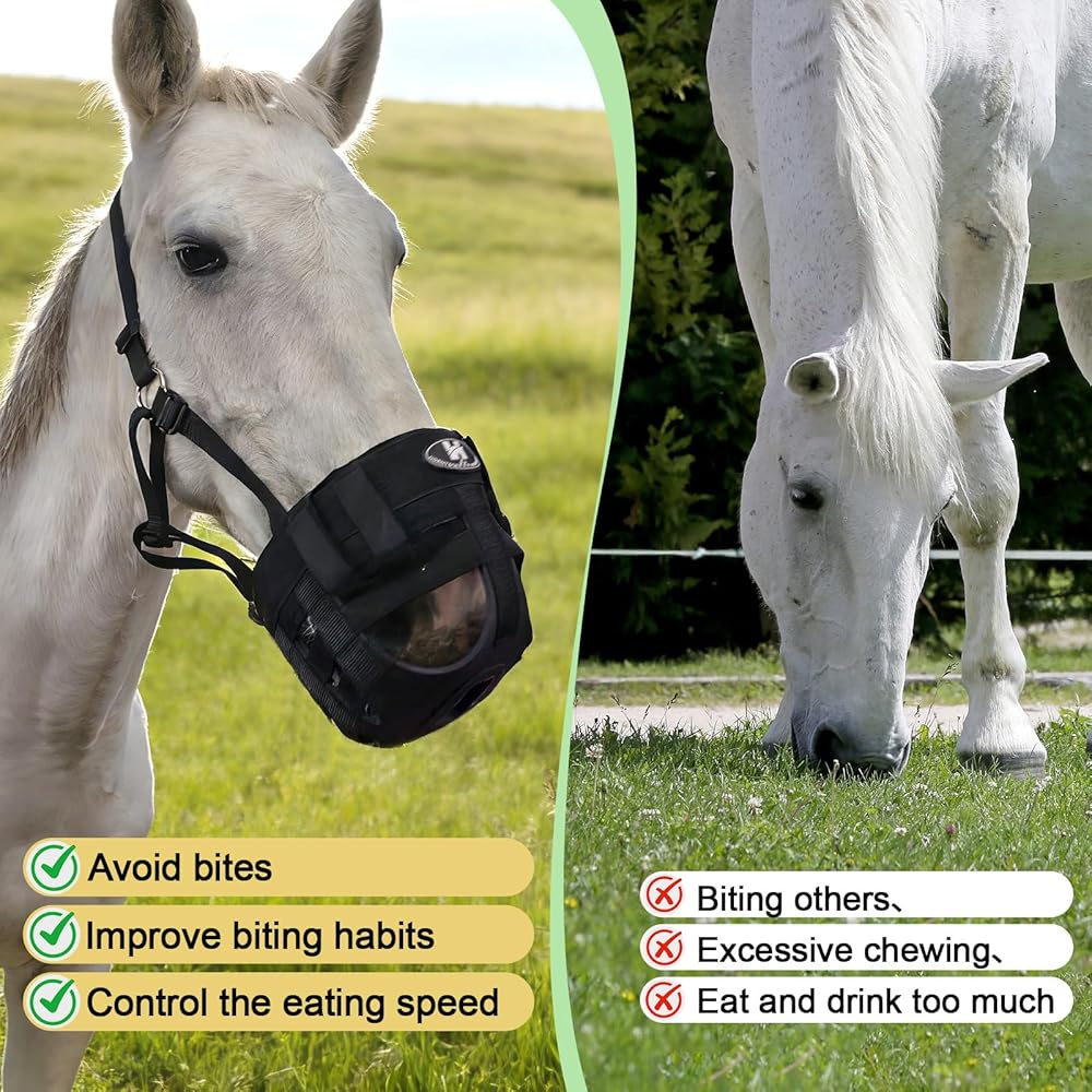 حماية مزدوجة - يمكن استخدام كمامة رعي الخيل لمنع العض وضمان سلامة الراكب، مما يوفر حماية إضافية لكما.