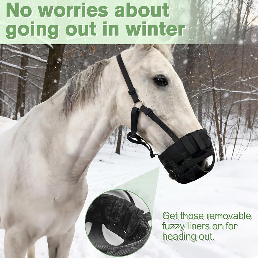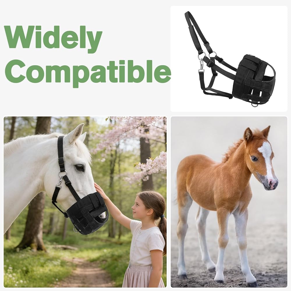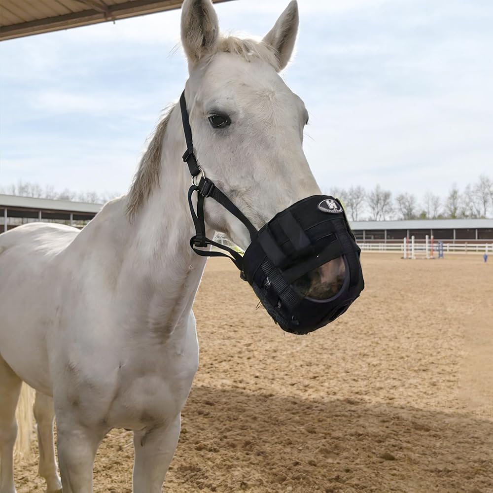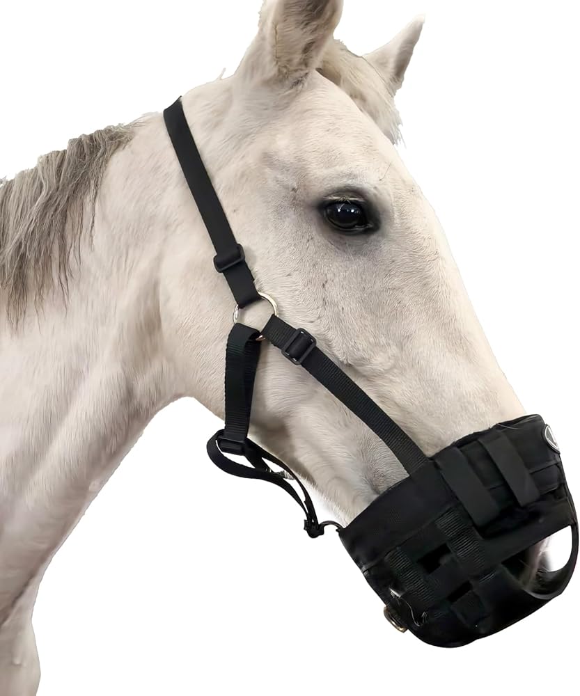 تعديل مرن - تتميز كمامة Horntack Grazing للخيول بحزام من النايلون قابل للتعديل لضمان ارتدائها بشكل مريح. يمكن تعديلها بمرونة لتناسب احتياجاتك، مما يجعلها مثالية للخيول والحيوانات الأخرى.