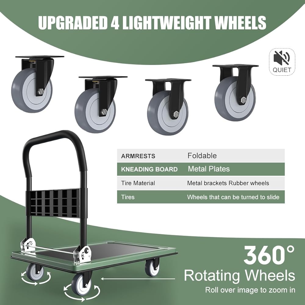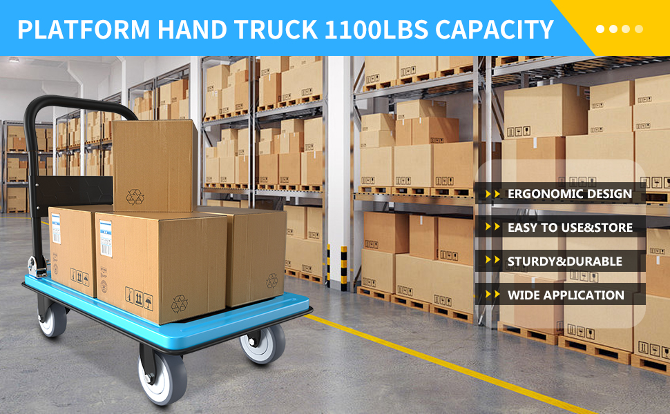 مقبض مريح غير قابل للانزلاق يضمن سهولة المناورة. تعمل مصدات الحواف على تقليل الأضرار المحتملة أثناء النقل. تم تصميم هذه الشاحنة ذات المنصة القابلة للطي لتكون متعددة الاستخدامات وقابلة للتكيف مع مجموعة متنوعة من البيئات والاستخدامات